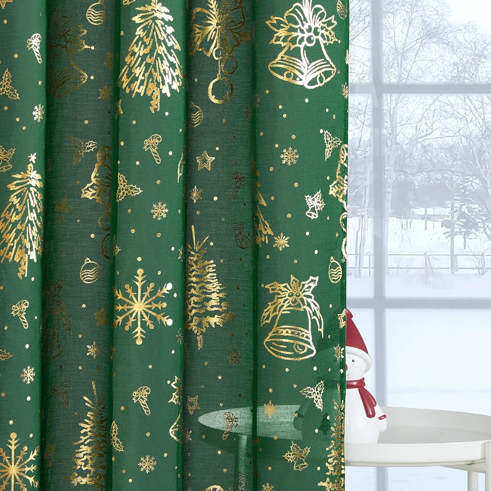 • 🎄Elegant Gold Foil Patterns for Festive Cheer 🎄 Featuring intricate gold foil designs of Christmas bells and trees, these curtains bring a festive cheer and sophisticated look to your home decor.