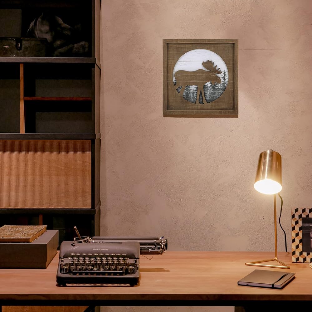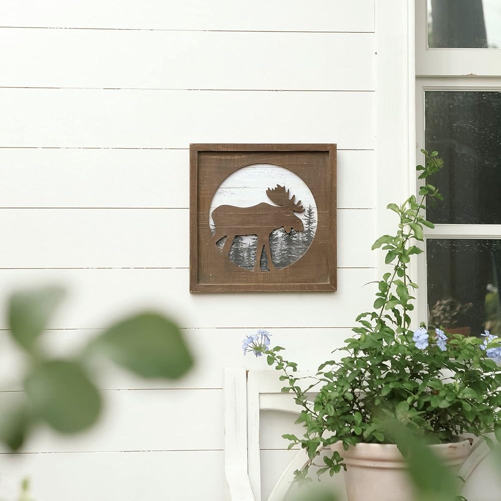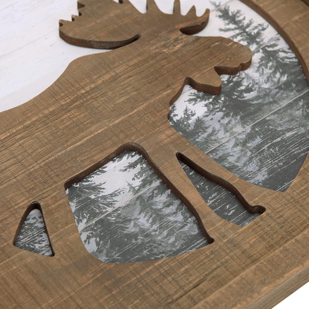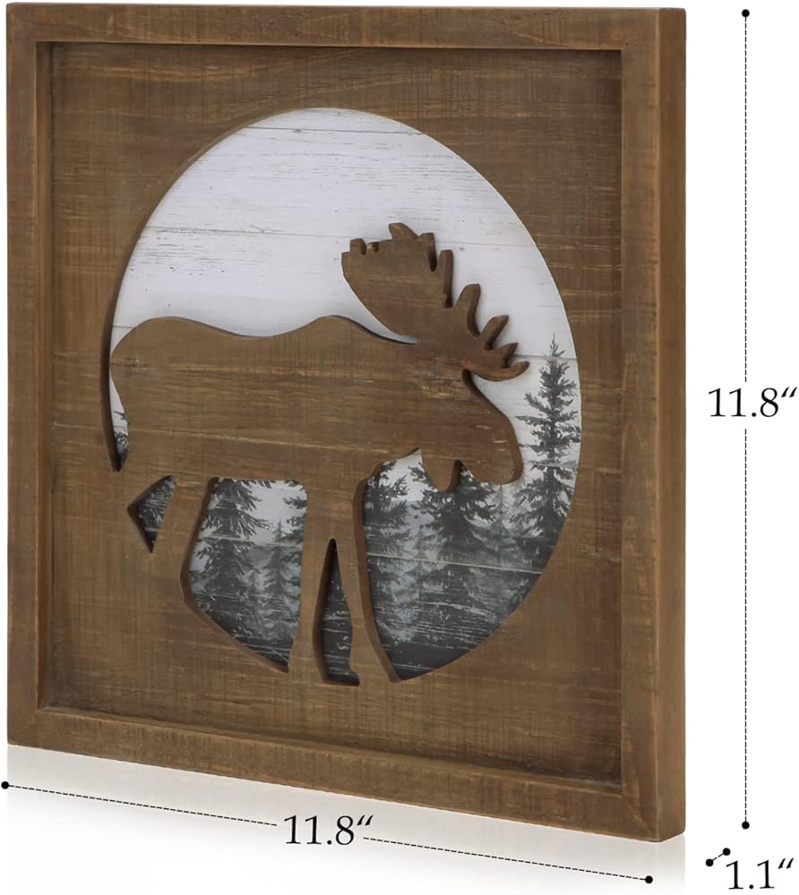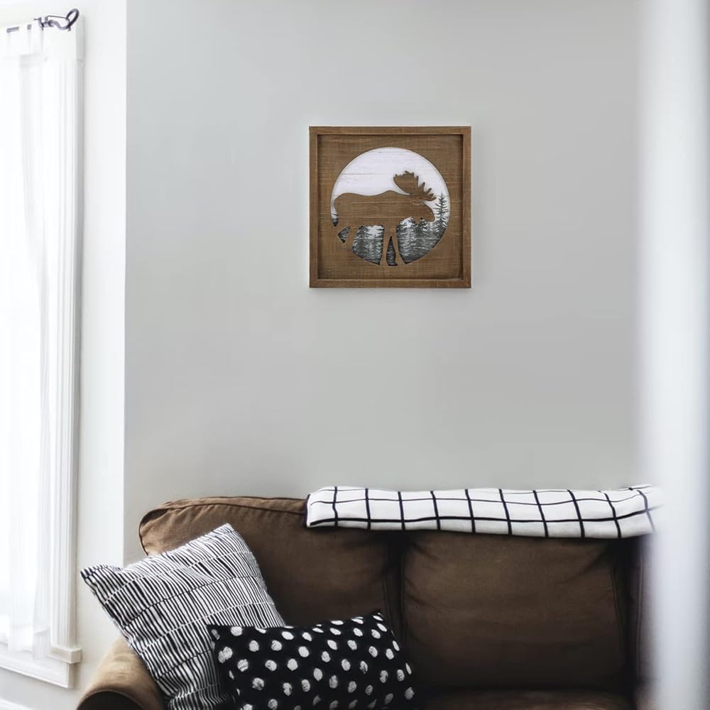 ديكور كابينة خشبية ريفية من NIKKY HOME مع موس - ديكور جدار ريفي للغابات للمنزل، كابينة خشبية، صيد أو نزل جبلي، صور خشبية ديكور على شكل حيوانات