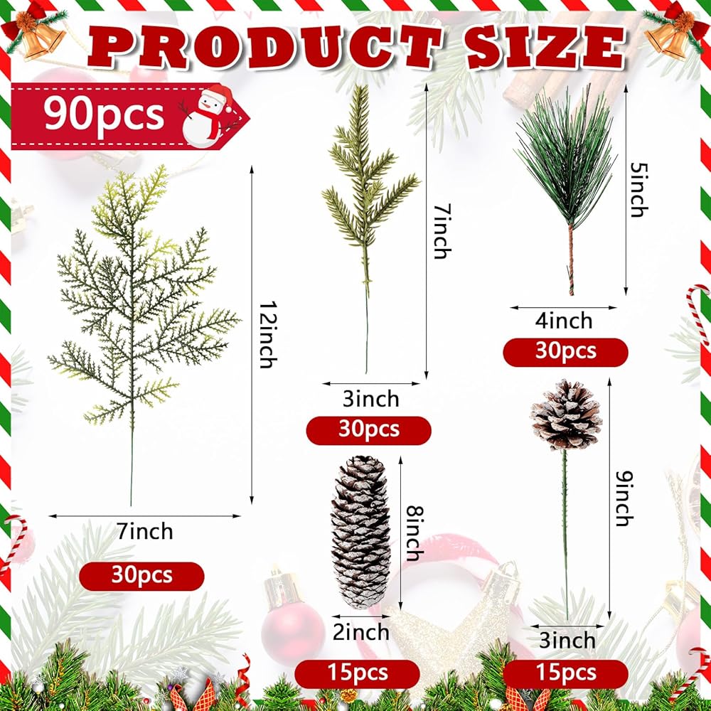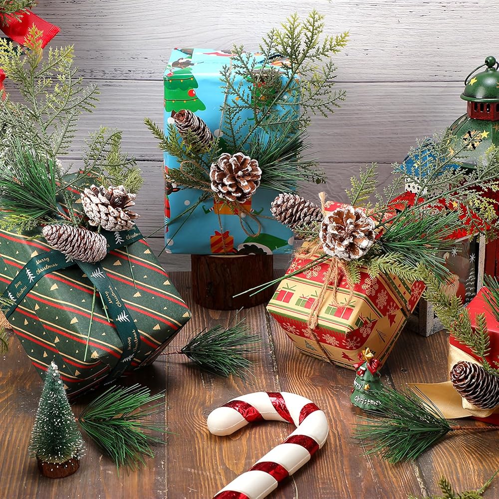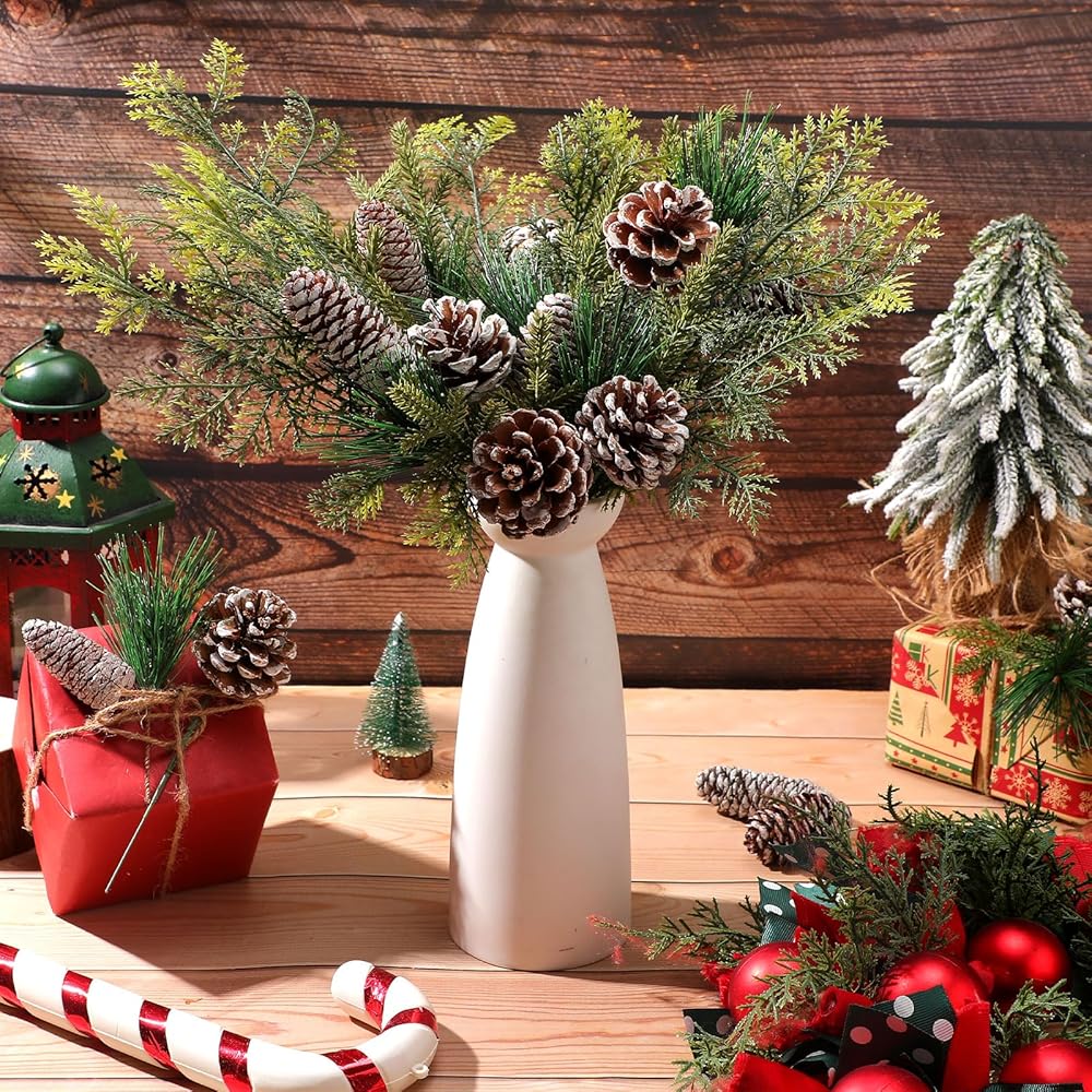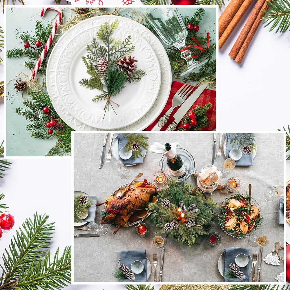Versatile Decorations: these artificial pine branches are an ideal addition to various crafts; Whether it can be applied to make unique garlands or as a vase decoration, these pine needles provide endless opportunities to enhance your festive decor, suitable for Christmas family party, Christmas theme party, make up party, wedding celebration, can well echo the theme, enhance the atmosphere