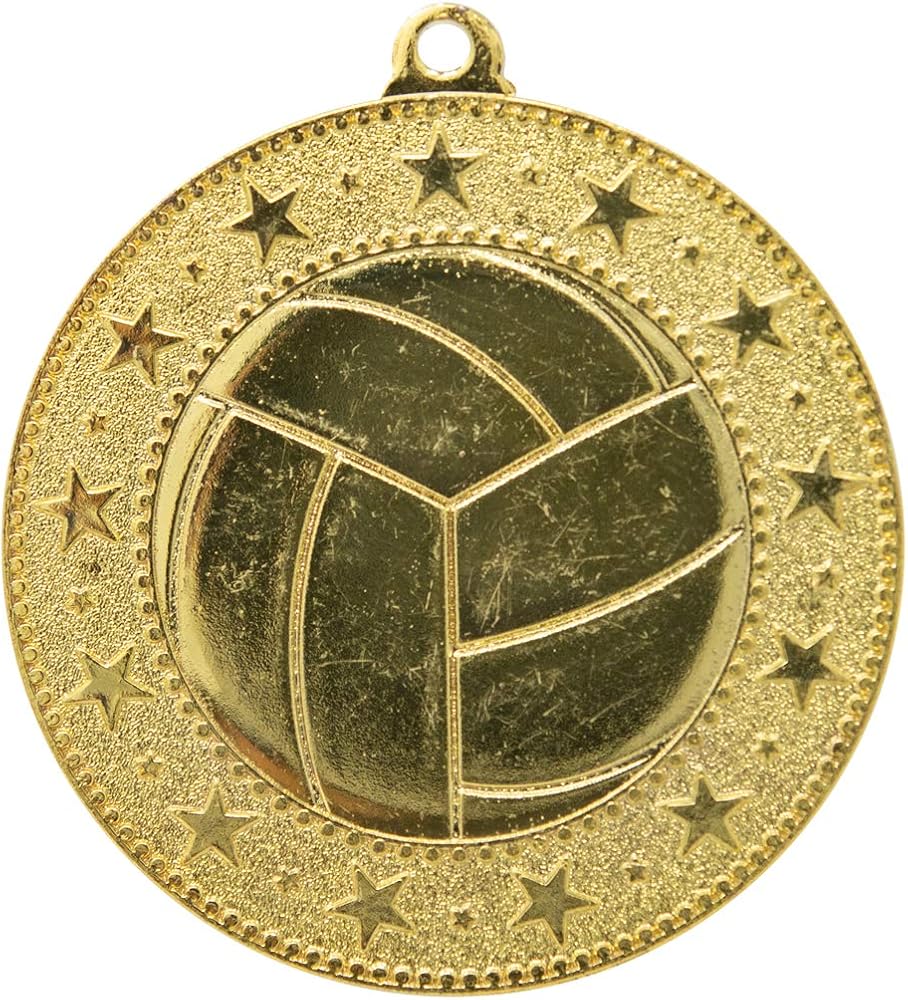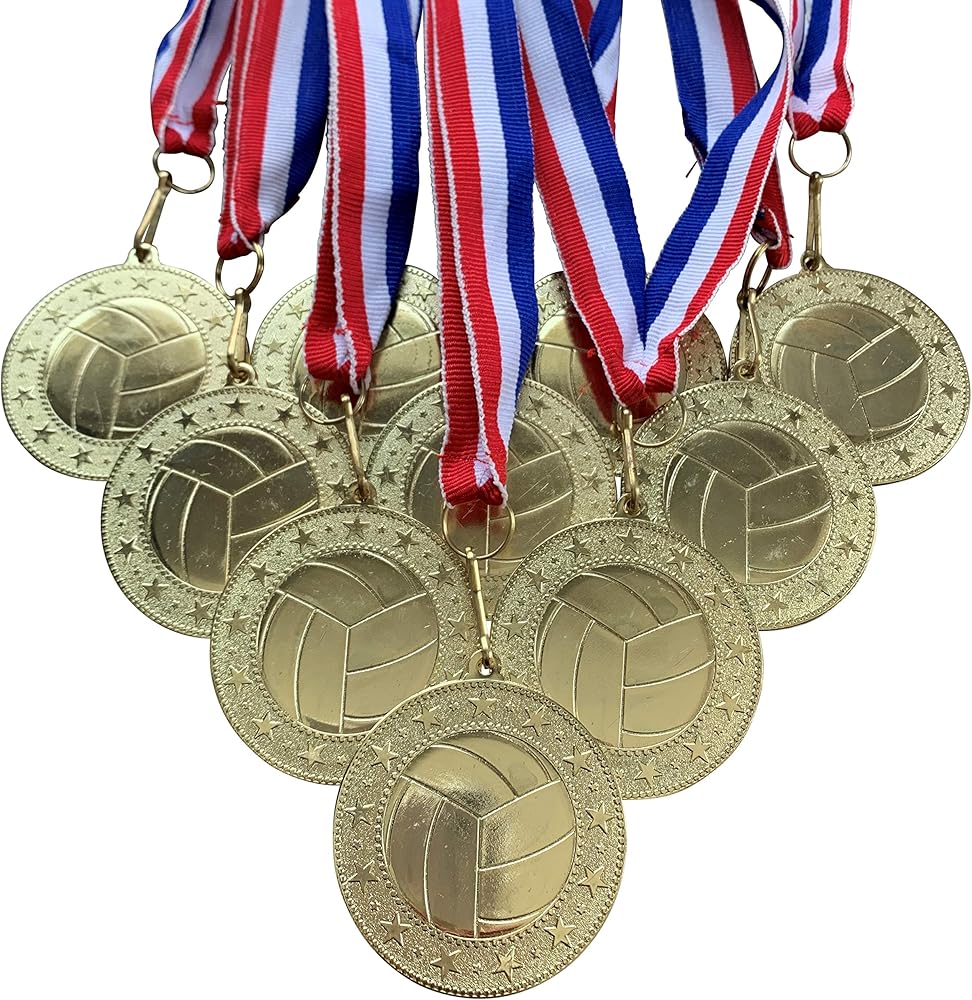 10 عبوات مكونة من 2 بوصة قطرها ذهبي لامع مختوم من المعدن الصلب لجائزة الكرة الطائرة مع شريط رقبة أحمر وأبيض وأزرق.