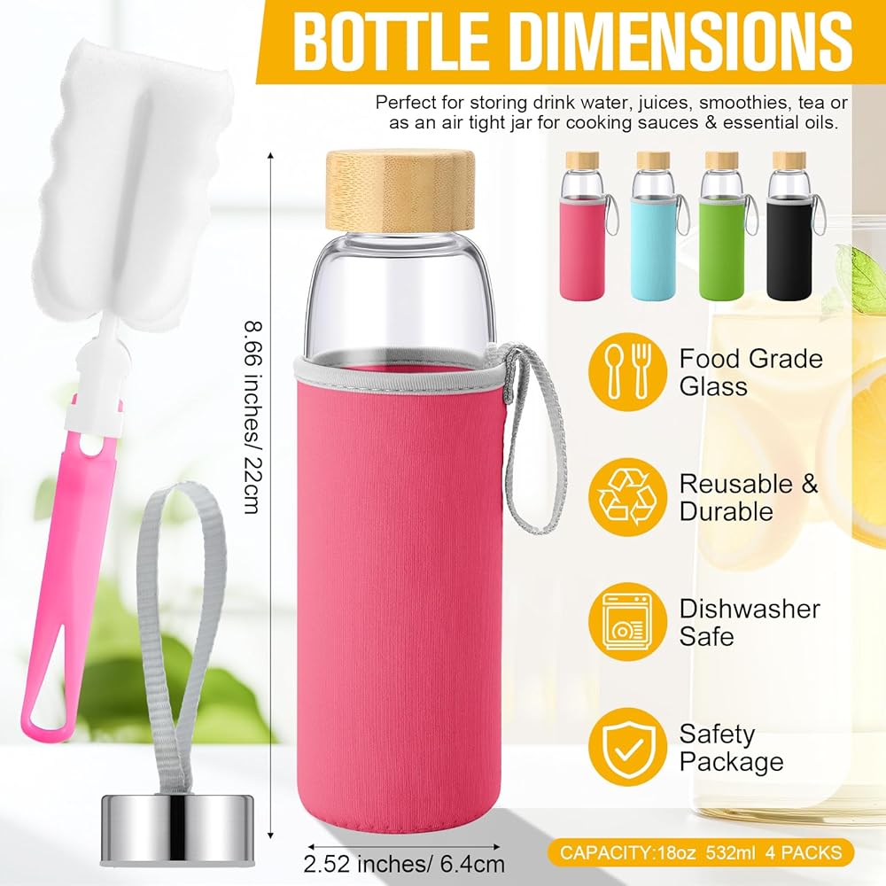 The water bottles set comes with a sponge brush that merges functionality with ease, making these glass bottles easy to clean. The smooth surface of the bottles allows for straightforward maintenance and hygienic upkeep.