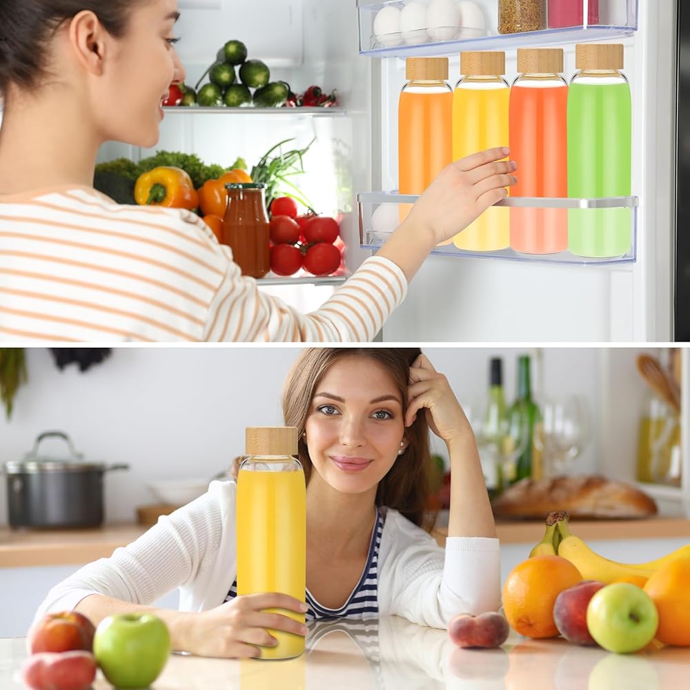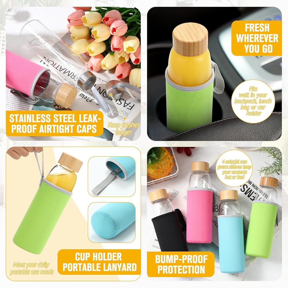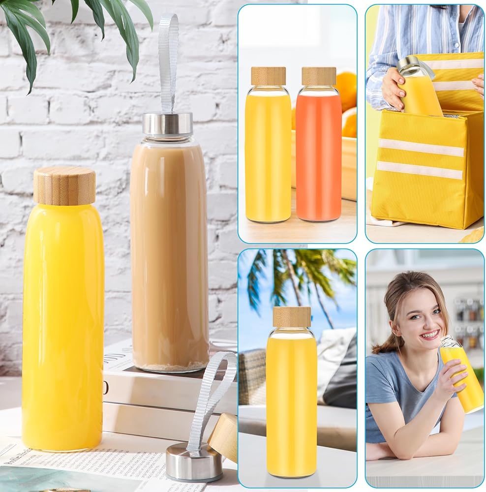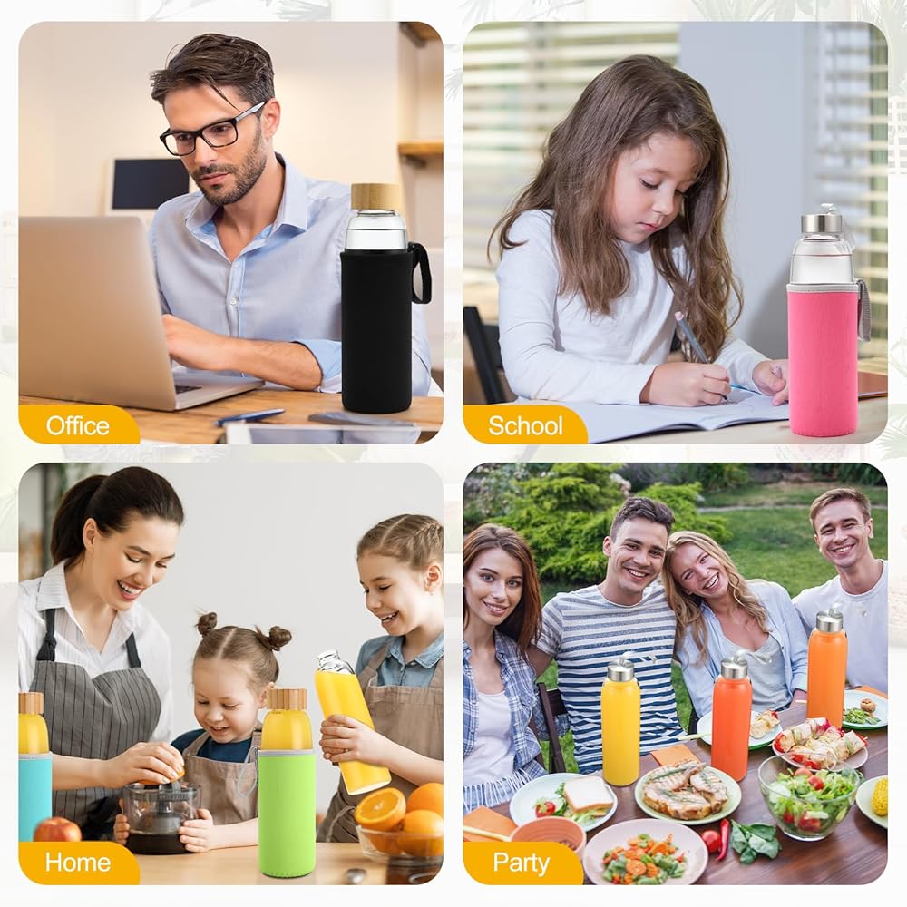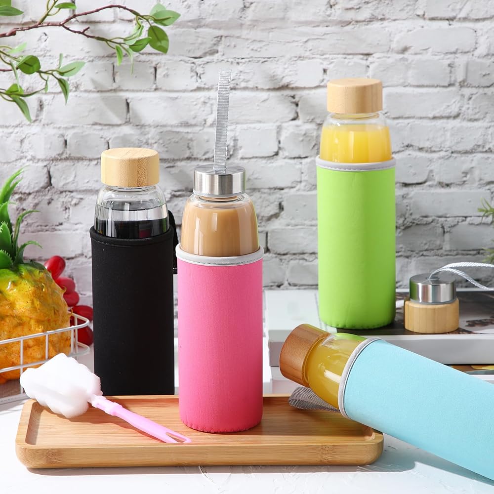 Enclosed with the glass bottle, the package also provides you with a variety of accessories. The bottle is paired with hand ropes on the protection sleeve for easy carriage and a smooth surface that is easy to clean with the included brush. Furthermore, the bottles' slim, portable design snugly fits in bags, cup holders, and fridges, enhancing their portability.