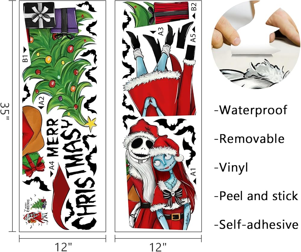 زينة عيد الميلاد: تم تصميم ملصقات الحائط الخاصة بنا لعيد الميلاد بأنماط حية مختلفة مثل جاك وسالي، والجماجم، والهياكل العظمية، وشجرة صنوبر عيد الميلاد، والهدايا والخفافيش. هذه الملصقات والملصقات الجدارية مناسبة لغرفة النوم، وغرفة المعيشة، والمطبخ، والحمام، وبيت المزرعة، ومتجر البيع بالتجزئة، ومستلزمات حفلات أعياد الميلاد. مساحة سحرية مثالية لمنزلك ومكتبك في الهالوين والكريسماس وعيد الميلاد ورأس السنة الجديدة