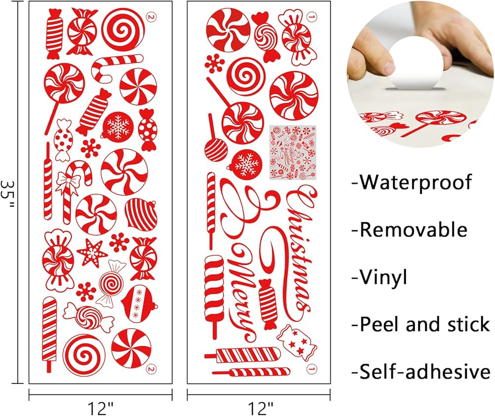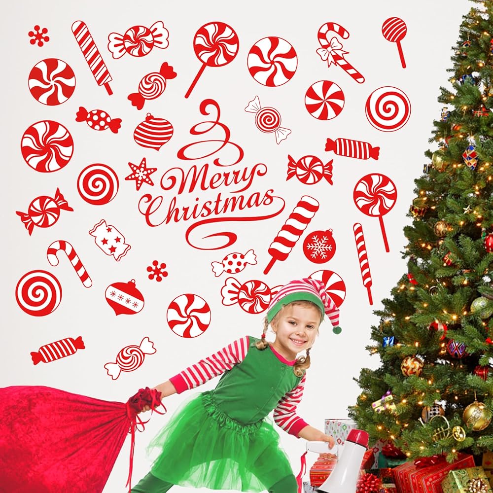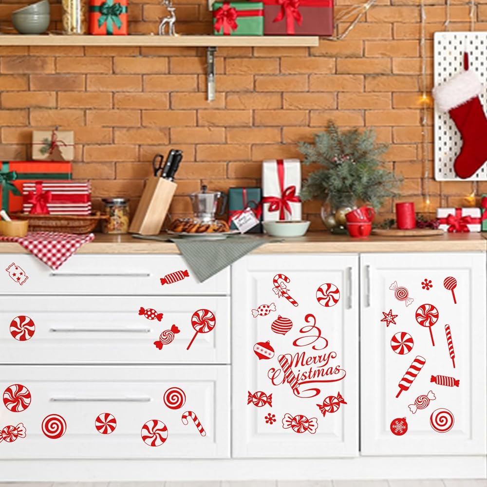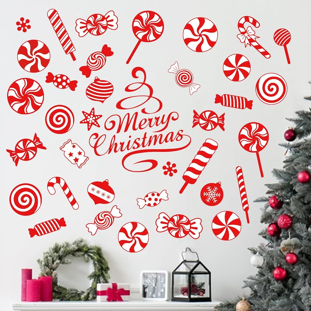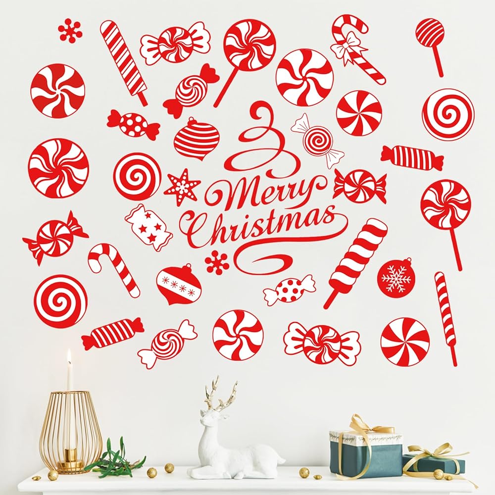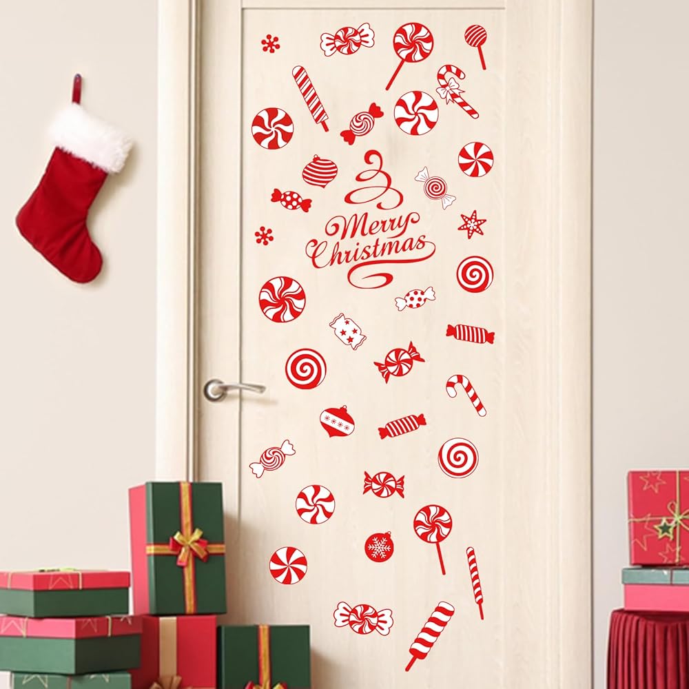 mfault عيد ميلاد سعيد النعناع الحلوى ملصقات الحائط الشارات، عيد الميلاد حلوى قصب مصاصة زينة غرفة النوم الفن، كرات عطلة الشتاء ندفة الثلج ديكور المنزل المطبخ