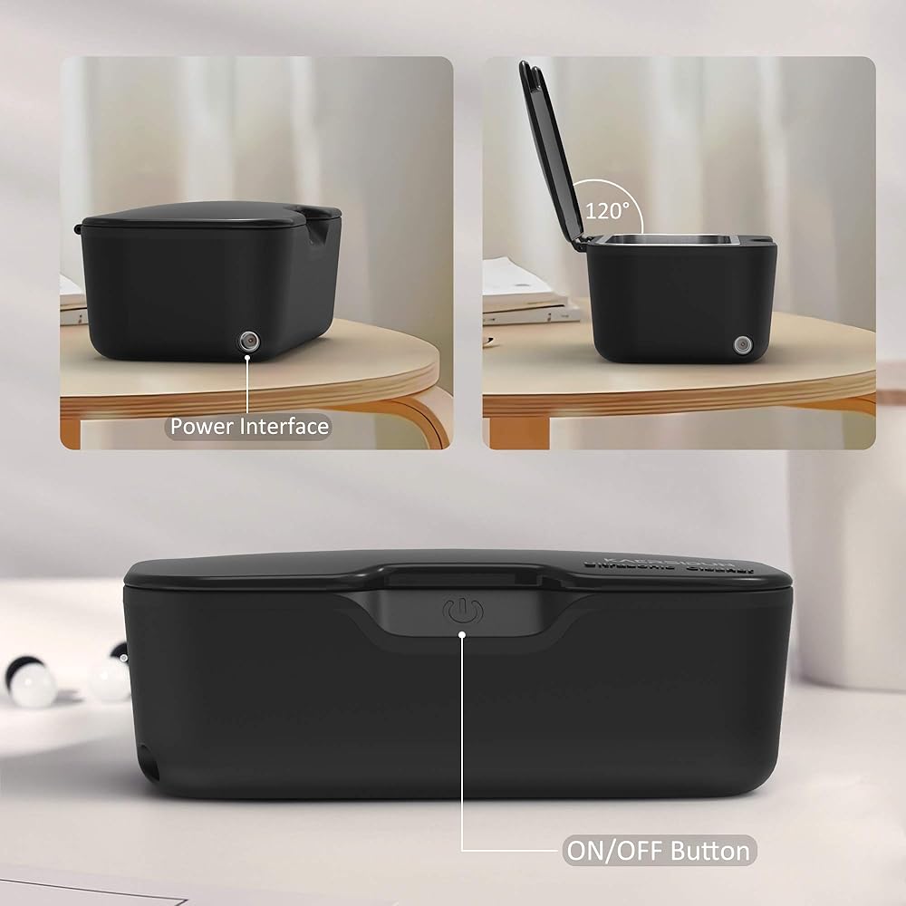 INNOVATIVE UNIQUE ULTRASONIC CLEANER : 25W high power ultrasonic cleaner with 360° all-round high effective deep cleaning function. Portable size and wide range of applications ultrasonic cleaning machine, one simple bevel touch button structure innovative design. All details are uniquely designed and repeatedly tested by our engineers, this ultrasonic cleaner not only practical, but also able to show your noble temperament.