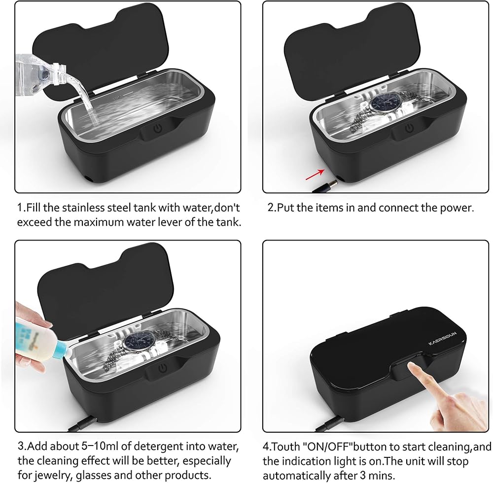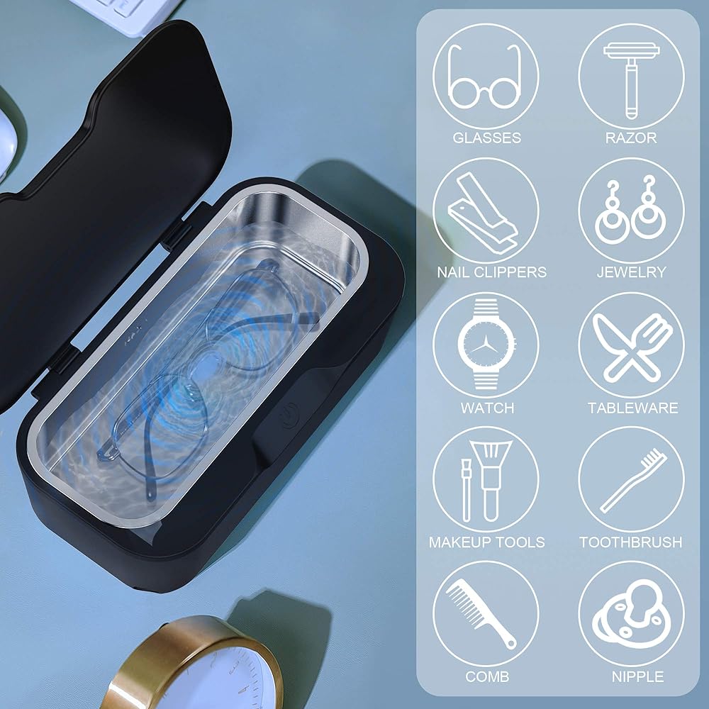 WIDE RANGE APPLICATIONS PORTABLE CLEANER : 550 ML capacity tank portable design ultrasonic cleaner with detachable power cord, fits size very easy to carry and store, can keep your items clean no matter where you go, can be used as jewelry cleaner, watch cleaner, denture cleaner, glasses cleaner, coin cleaner, lab instruments cleaner and more. Is a good cheaning helper in your life. You should have one.