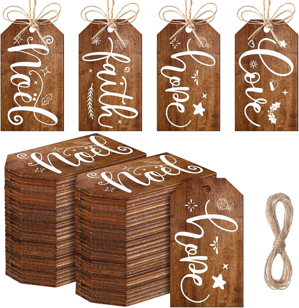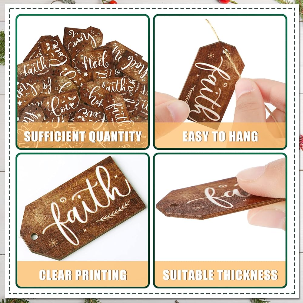 تنطبق على مناسبات متعددة: بطاقات الهدايا الخشبية المعلقة مناسبة للعديد من التطبيقات، يمكنك استخدامها لتزيين أشجار عيد الميلاد وجوارب عيد الميلاد والنوافذ والأبواب وأكثر من ذلك، مما يضيف جو احتفالي دافئ وسميك لمنزلك