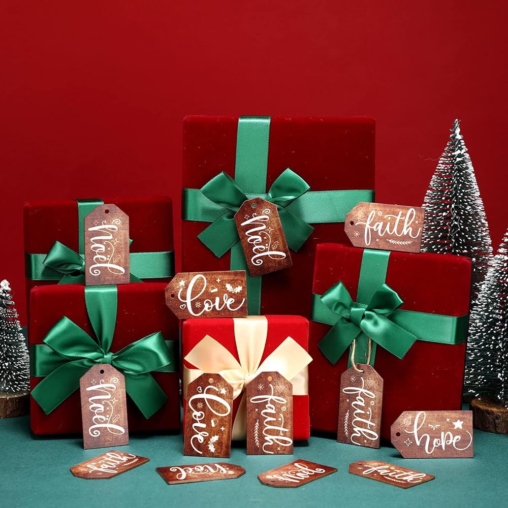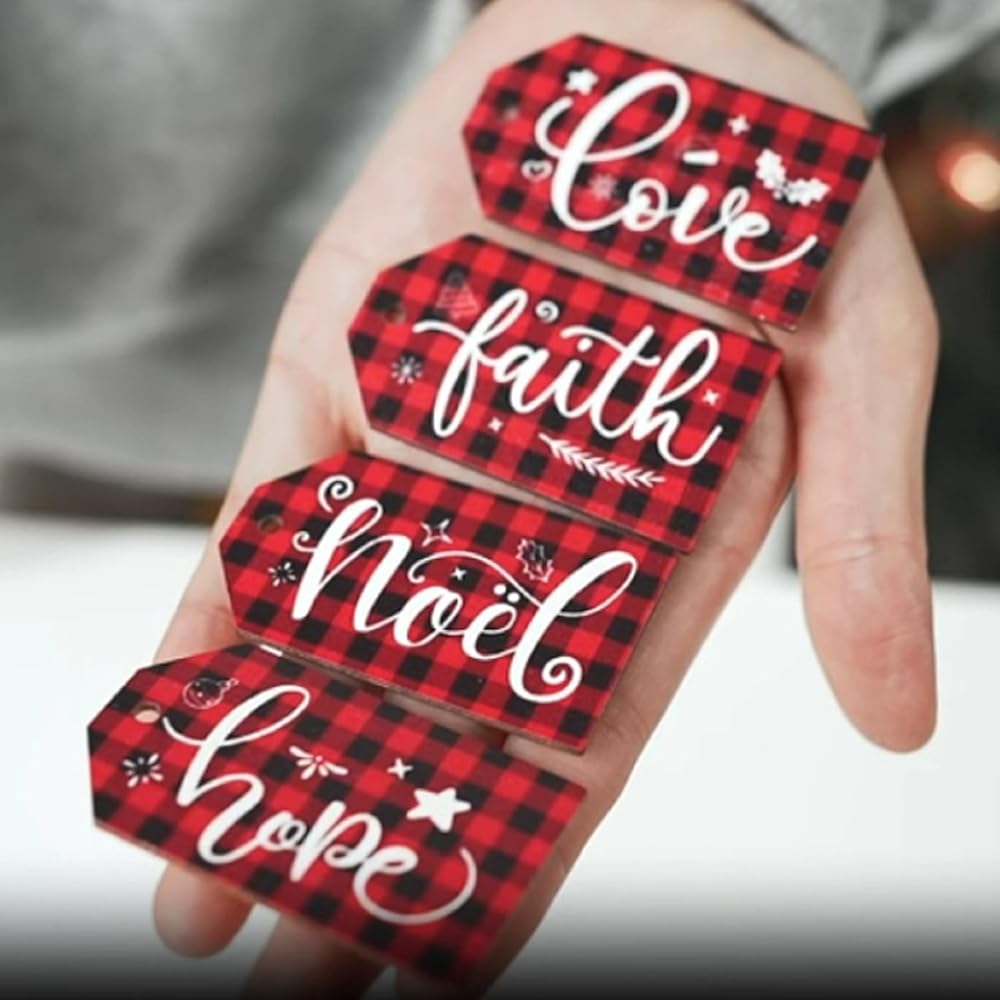 مليئة بأجواء عيد الميلاد: تم تصميم ملصقات الهدايا الخشبية بألوان بنية عصرية مطبوعة مع بعض الكلمات المباركة باللون الأبيض، أنيقة وعصرية، وتقدم ديكورات جذابة ورائعة لعيد الميلاد الخاص بك
