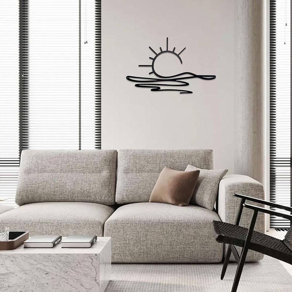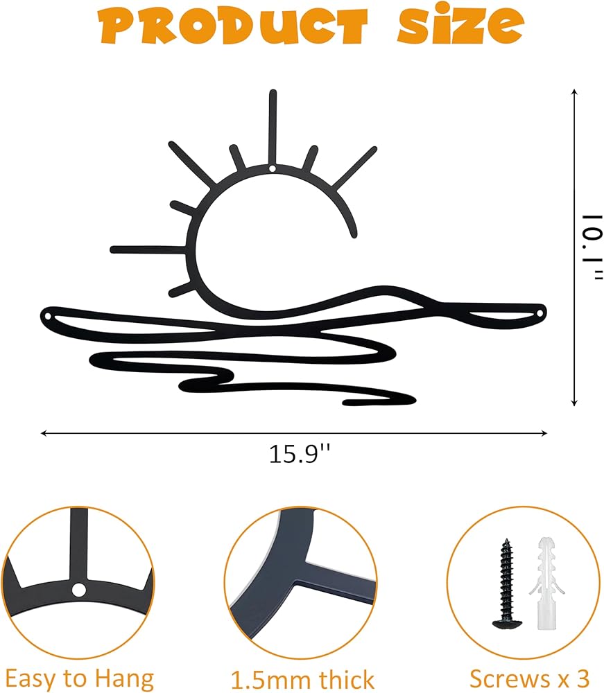 Add a touch of elegance to your space with our unique Sunrise Metal Wall Art. This piece is expertly crafted from quality metal using precision laser-cutting techniques, and coated with premium black paint to ensure a smooth surface and rust prevention. With dimensions of 15.9*10.1 in, it's just the right size to stand out, yet blend in with your decor. Installing is a breeze, as each product has been pre-drilled and includes the necessary screws. Whether it's a gift for a special occasion or just a new addition to your home decor, this Metal Wall Art Sculpture is sure to impress. Order now and embrace the minimalist charm of this modern wall decor piece.
