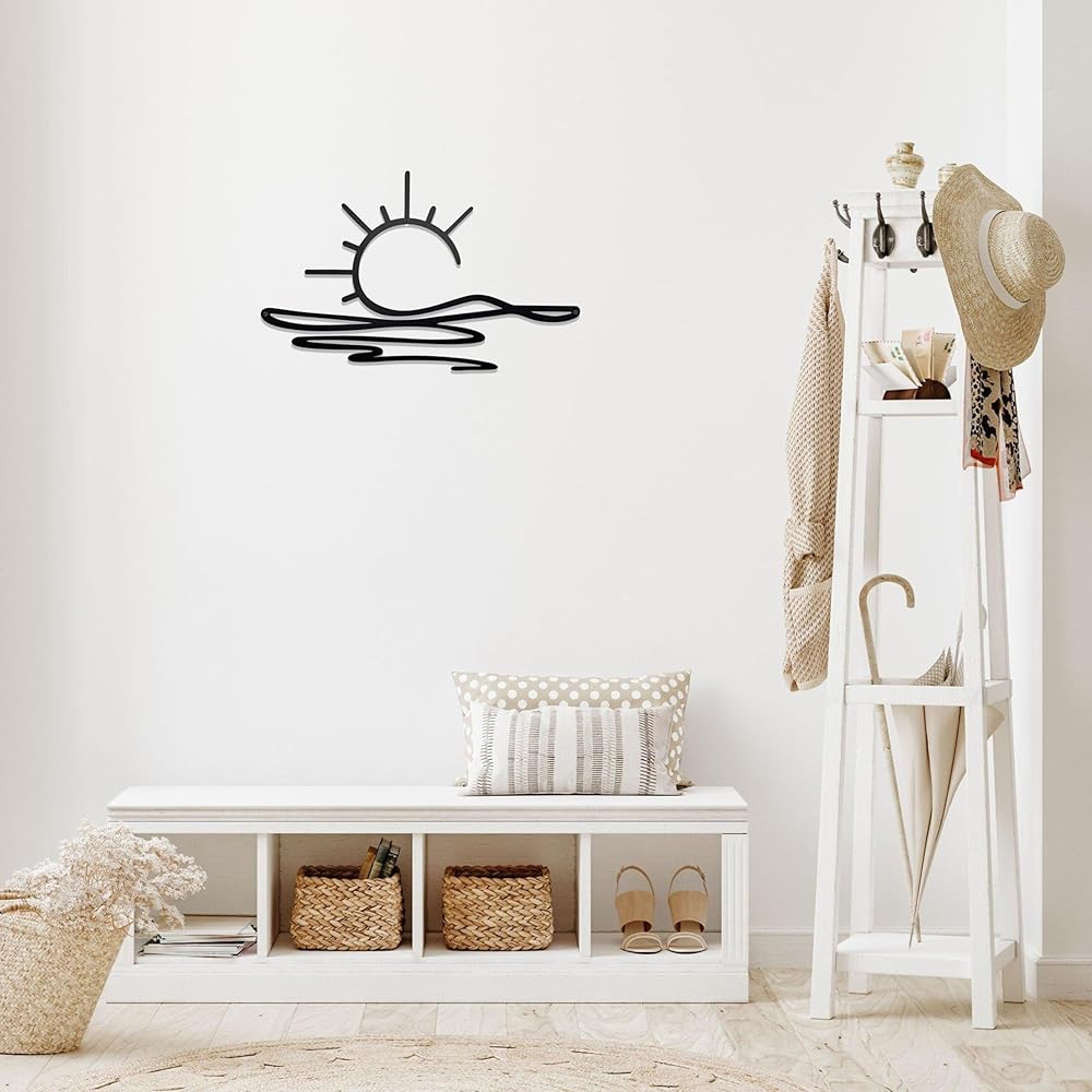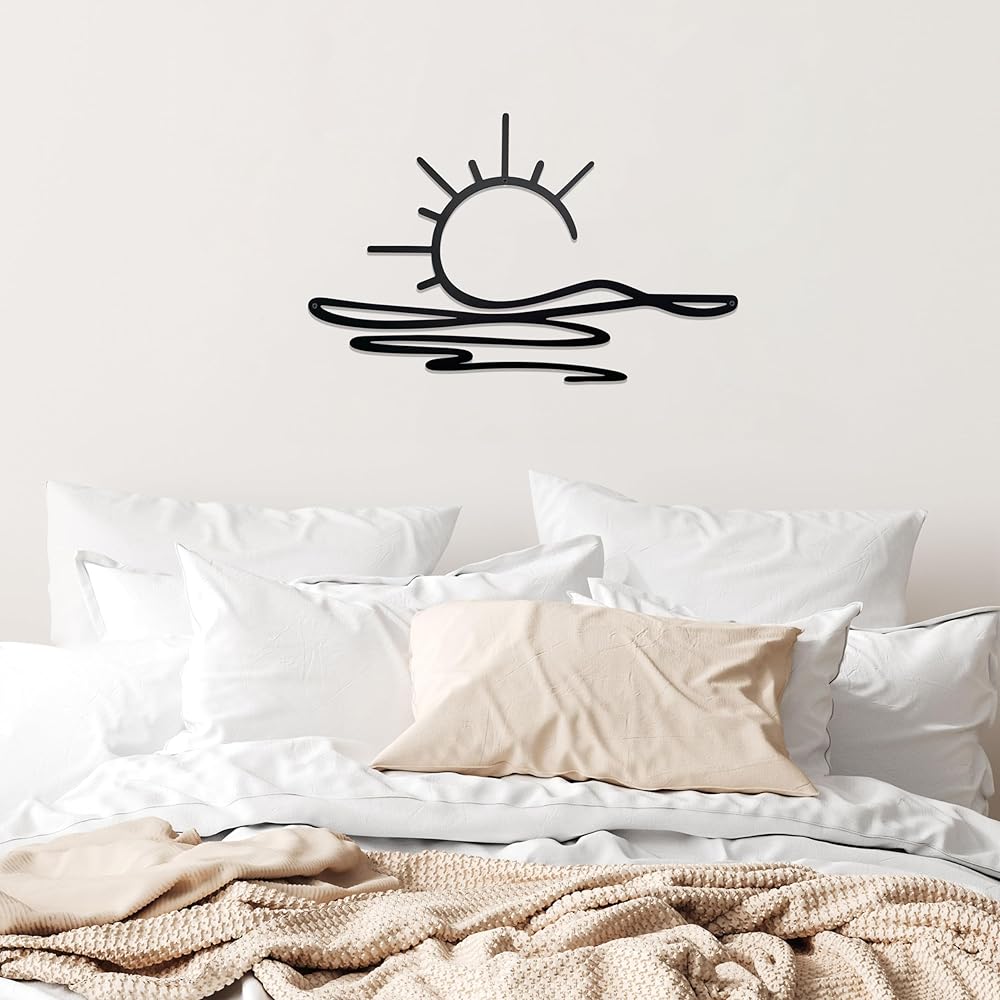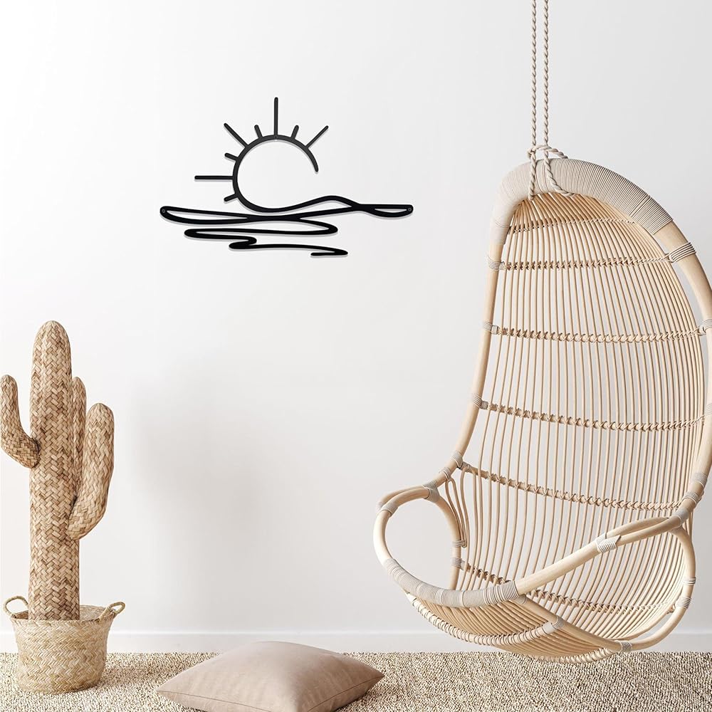 noxozoqm Sunshine Metal Sign Black Sun Metal Wall Art Boho ديكور حديث الحد الأدنى جدار الفن ديكور البحر البريق المعدني شنقا ديكور الحائط لغرفة نوم المطبخ غرفة المعيشة، 15.9 × 10.1 بوصة