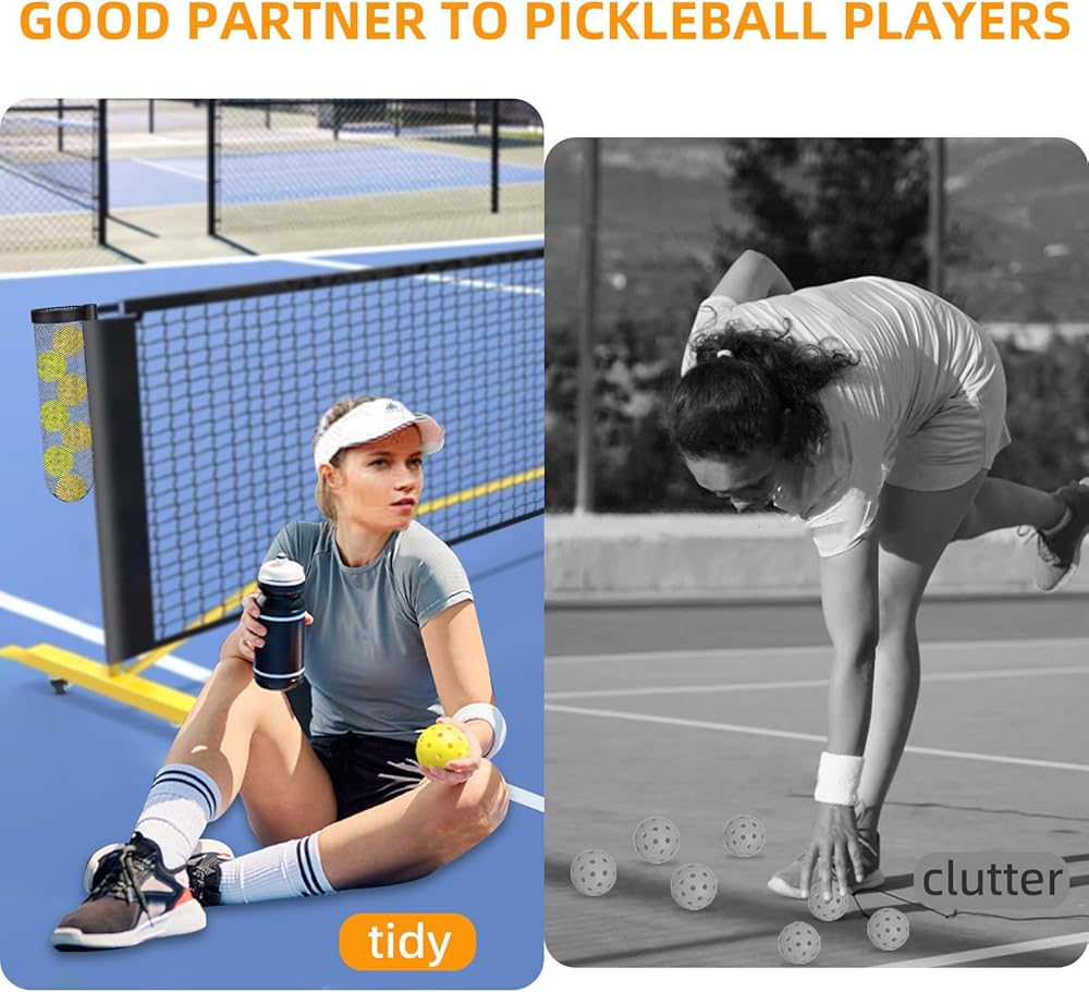 Easy Storage & Access: Our pickle ball collector hangs on the pickleball post with an open opening that doesn't obstruct you, so you can easily slip in the pickleball you picked up from the floor or quickly take the ball out of the bag, saving you a lot of hassle and improving your efficiency