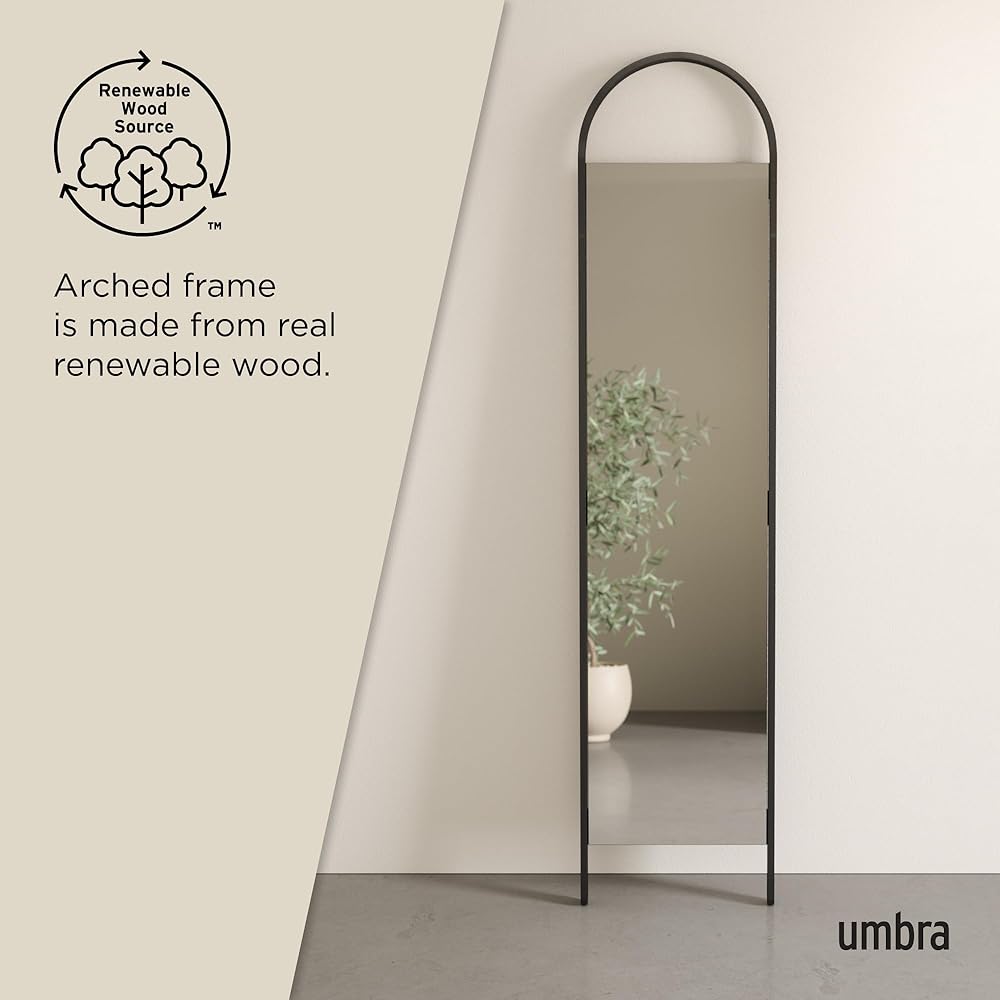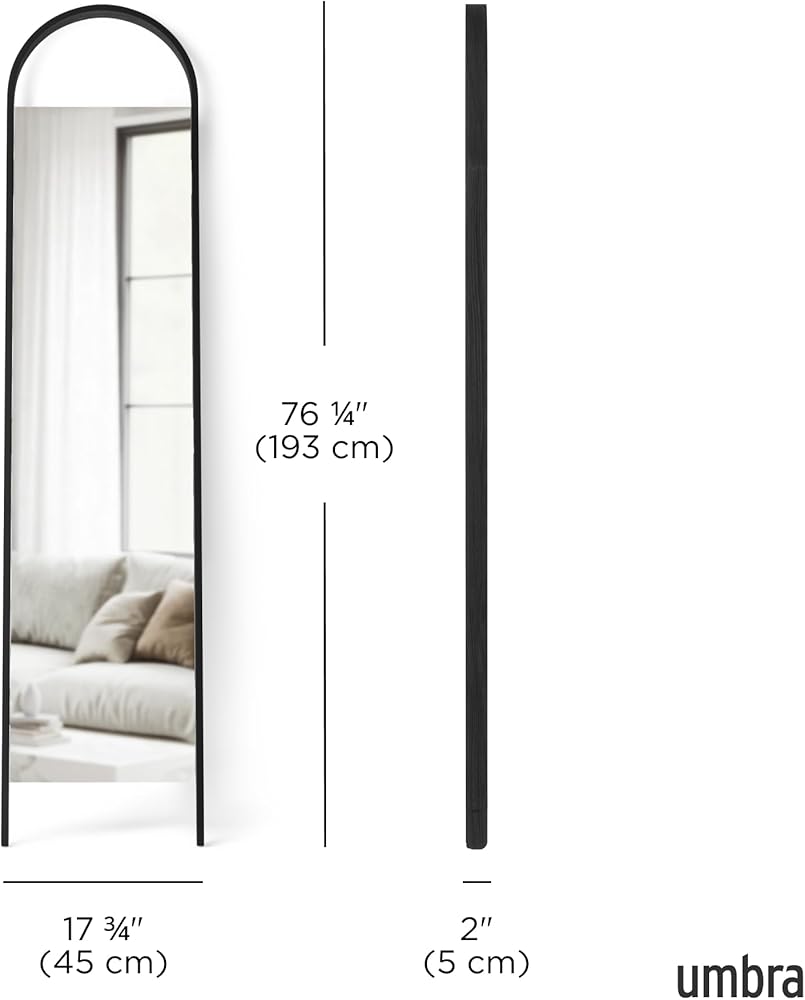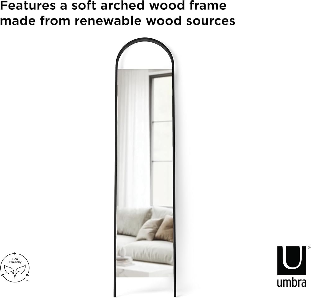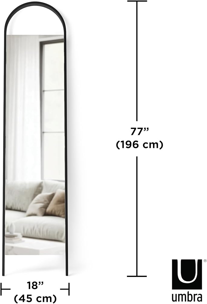 This eye-catching piece is sure to become a statement in any room. Bellwood Leaning Mirror features a soft arched wood frame made from renewable wood, offering both style and sustainability. The Bellwood Leaning Mirror is 17.7 x 77" (45x 195cm) in size – big enough to make an impact, yet small enough to fit in almost any room. Creating reflection and depth, this mirror will instantly bring extra light into almost any space. Includes anti-tip hardware and cannot be mounted to the wall. Part of Umbra's Bellwood Collection. Assembly required.