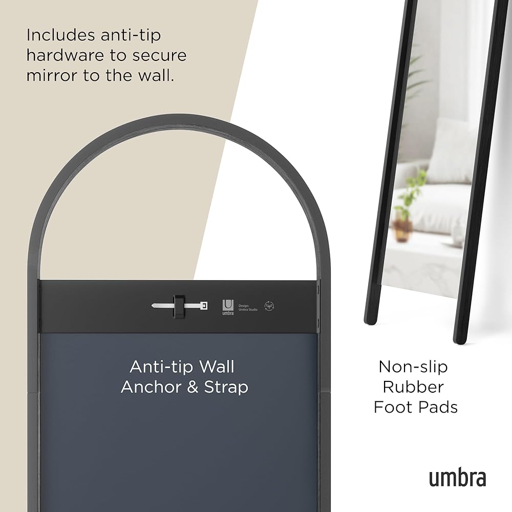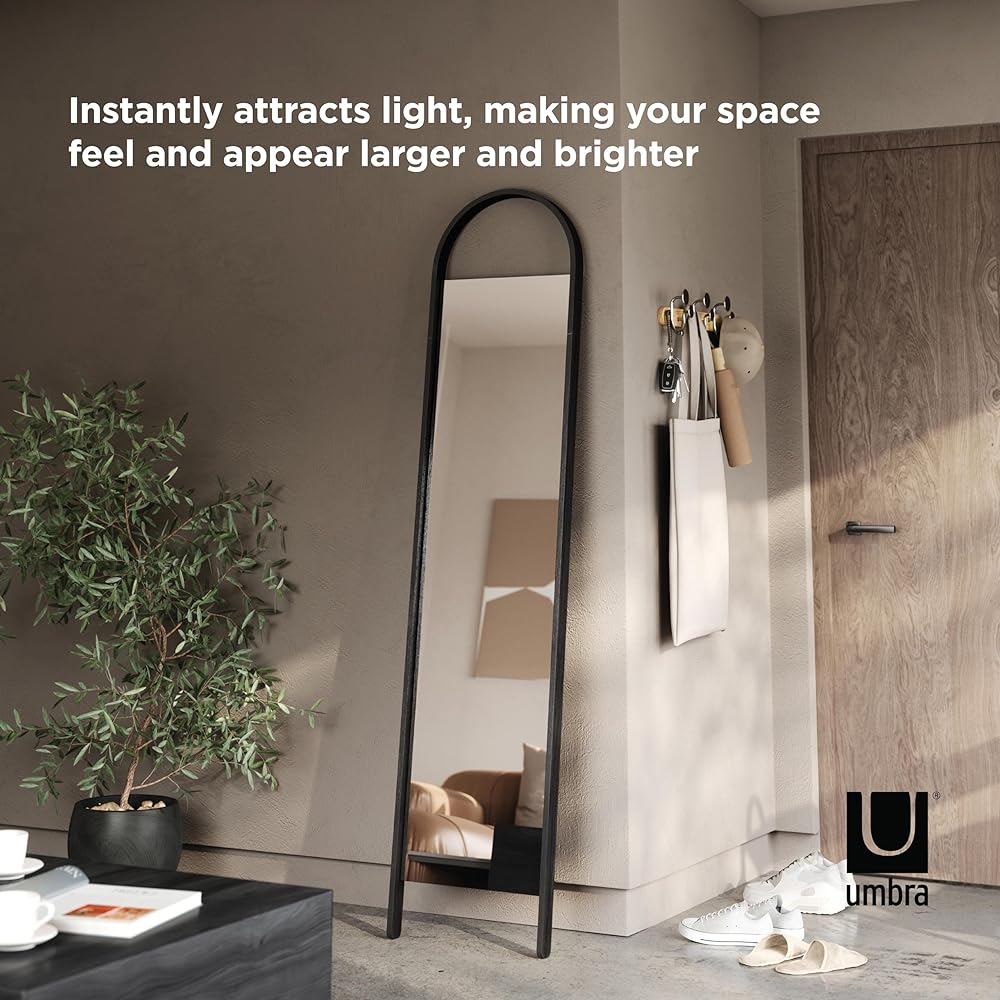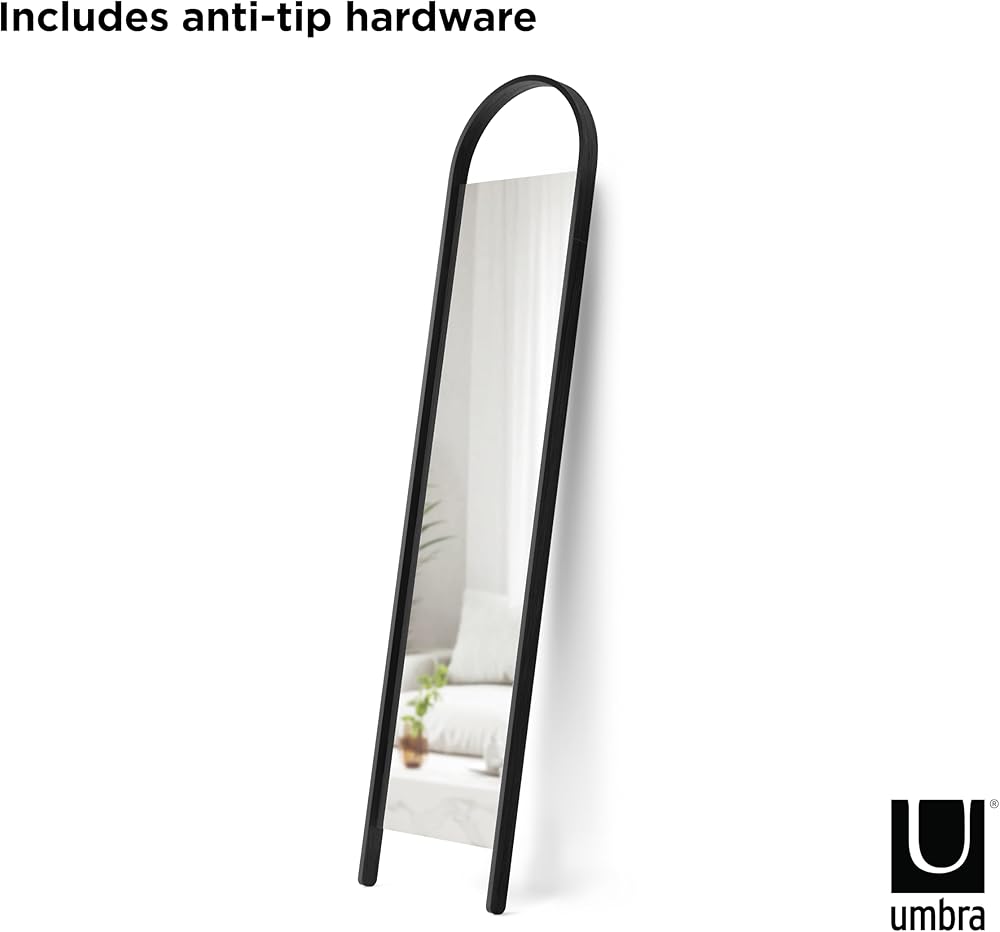 This eye-catching piece is sure to become a statement in any room. Bellwood Leaning Mirror features a soft arched wood frame made from renewable wood, offering both style and sustainability. The Bellwood Leaning Mirror is 17.7 x 77" (45x 195cm) in size – big enough to make an impact, yet small enough to fit in almost any room. Creating reflection and depth, this mirror will instantly bring extra light into almost any space. Includes anti-tip hardware and cannot be mounted to the wall. Part of Umbra's Bellwood Collection. Assembly required.