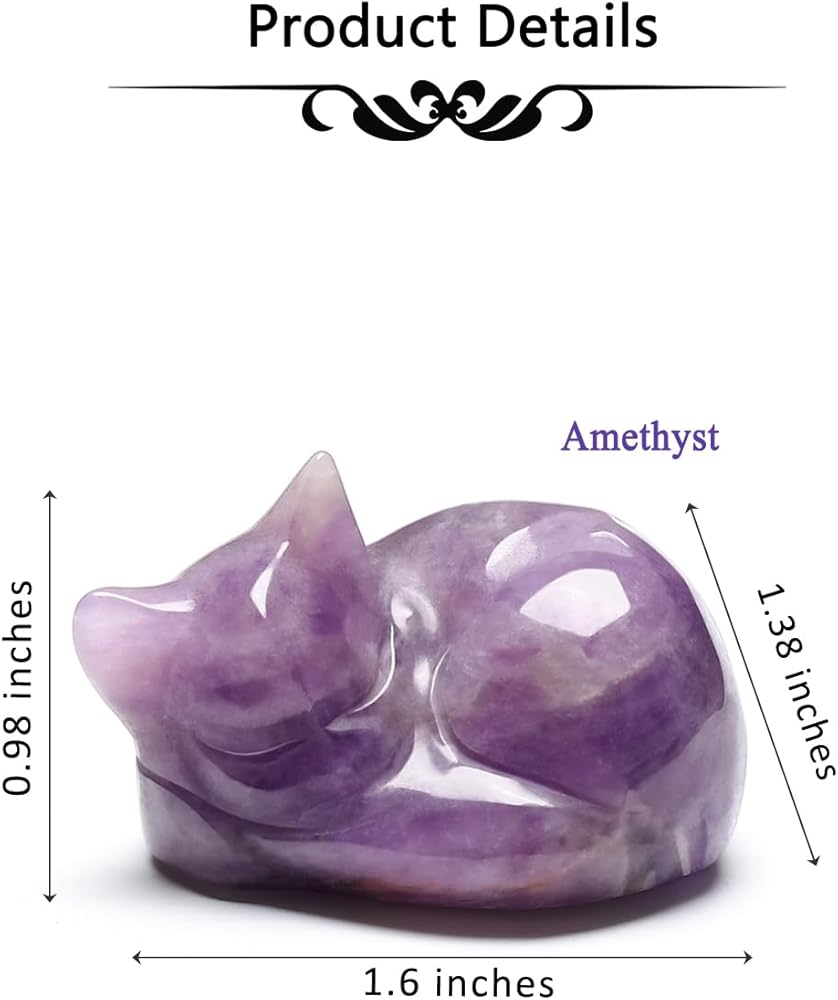 • Specifications: sleeping cat figurine size: 3.5x3.4x2.5cm/1.38x1.34x0.98 inches; Material: tiger eye crystal stone; Weight: 35g; Package: 1x gemstone cat statue, 1x gift box