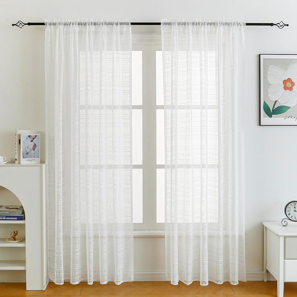 🎶 جاهزة الصنع - تتضمن العبوة لوحتين من الستائر المطرزة من الدانتيل الشفاف، يبلغ مقاس كل لوحة 58 بوصة عرضًا و72 بوصة طولاً، وتصميم جيب قضيب.