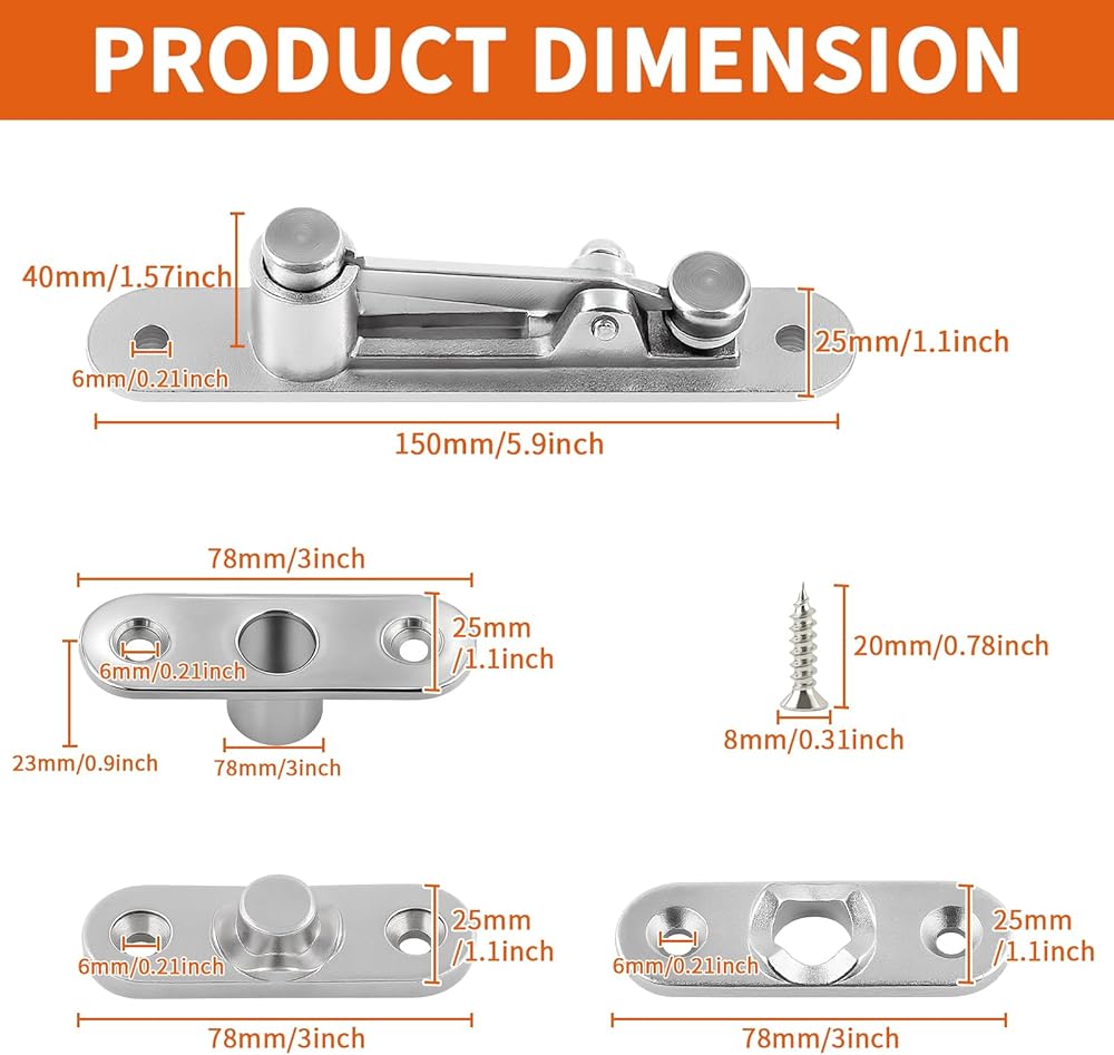 • هيكل متين - مصنوعة من الفولاذ المقاوم للصدأ السميك والصلب، مجموعة المفصلات المحورية ذات اللون الفضي قوية ومتينة. تعمل معالجة السطح على تعزيز مقاومة الصدأ والكسر، مما يضمن عمر خدمة أطول