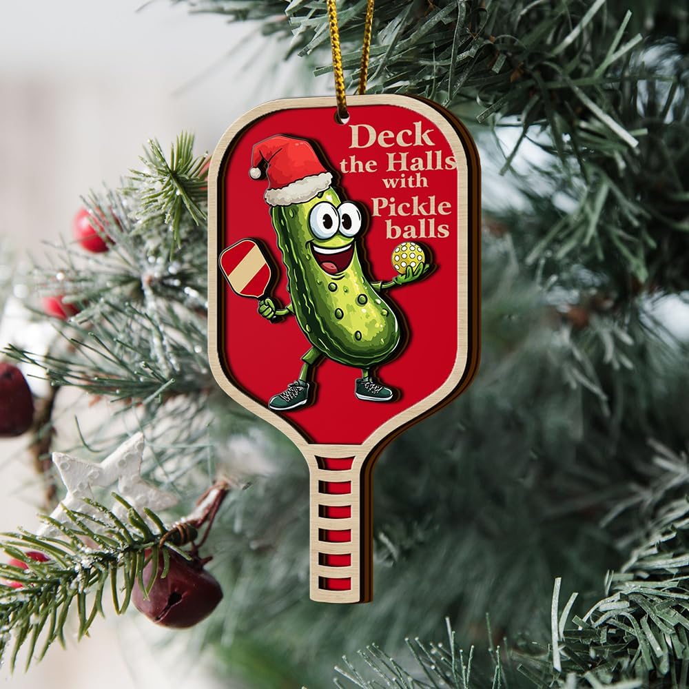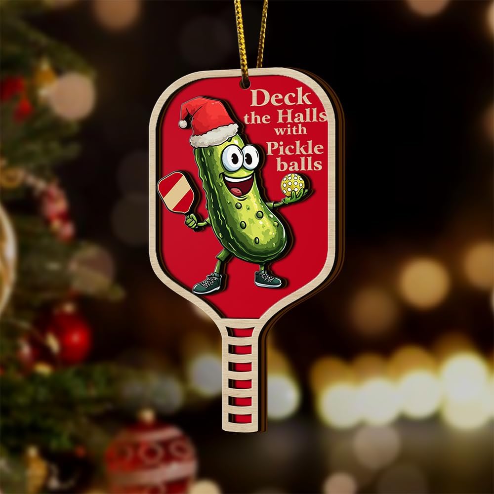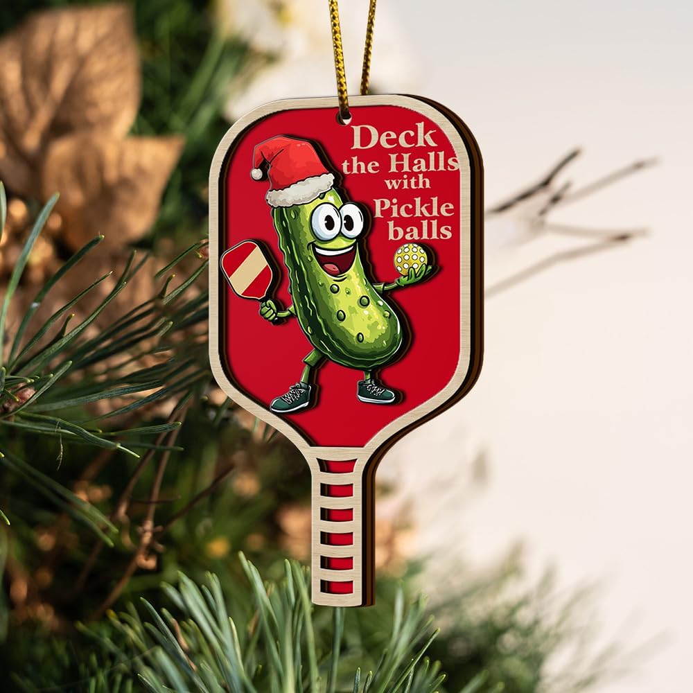 زخرفة كرة المخلل، زخرفة خشبية بطبقتين، زخرفة شجرة عيد الميلاد، كرة المخلل عبارة عن شبت كبير، تزيين القاعات بزخرفة مجداف كرات المخلل، هدية مضحكة لمحبي الرياضة لها