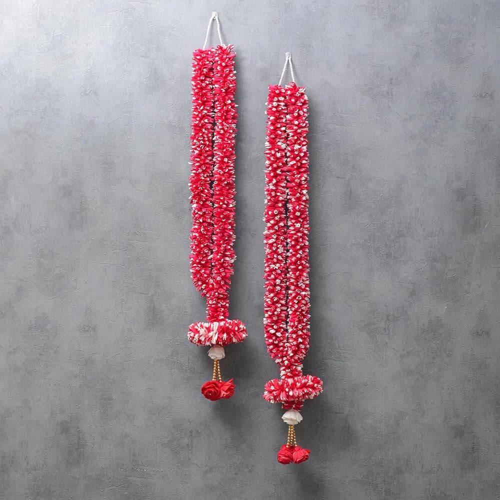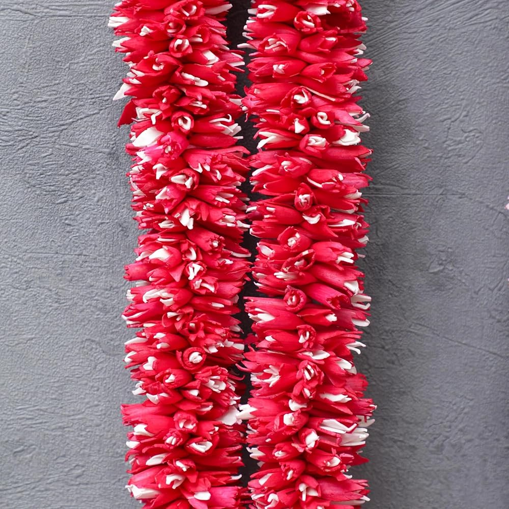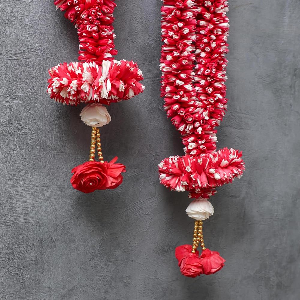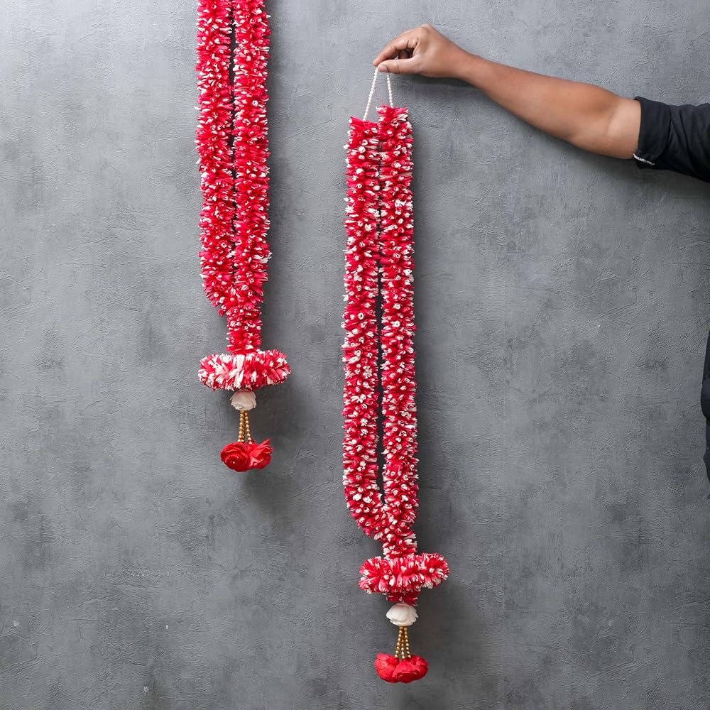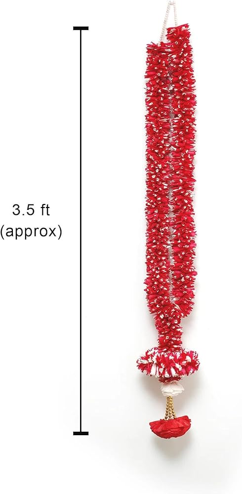 إكليل زهور من خشب فارمالا سولا بطول 3.5 قدم | حفل زفاف المهرجانات الهندية، غرفة بوجا أصنام الله، إطارات الصور مالا | جيمالا/هار للعروس والعريس | الأبيض والأحمر (عبوة من 1)