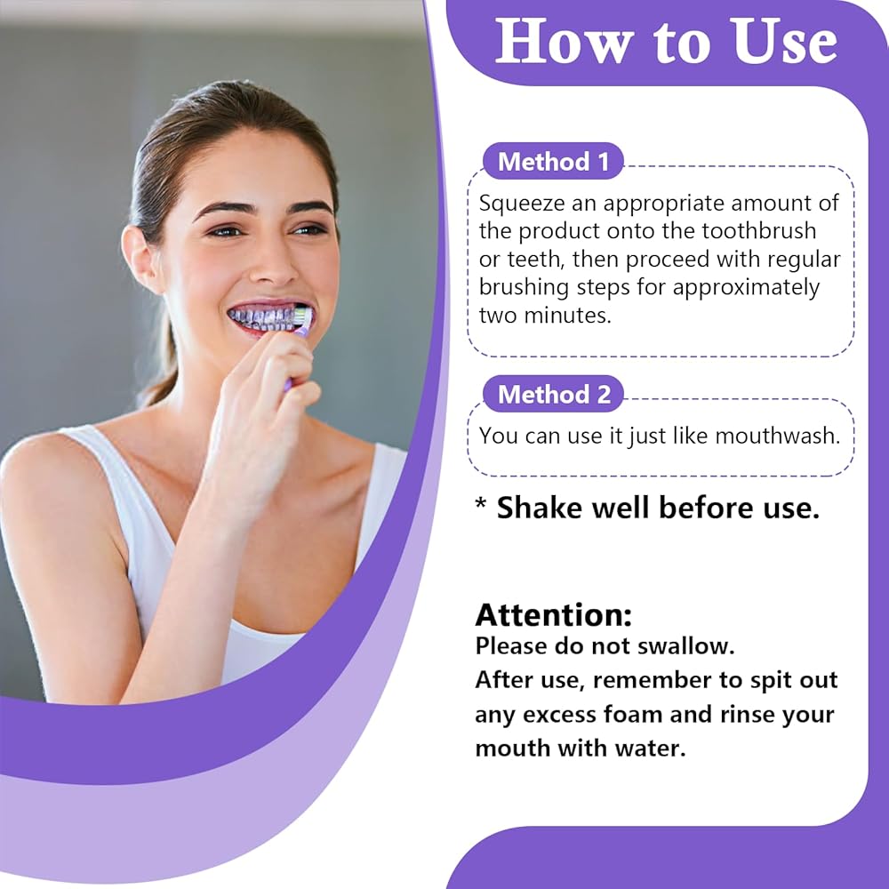 • [ Innovative Formula ] Experience the advanced color-correcting technology with our purple whitening toothpaste, designed to neutralize yellow tones for brighter teeth.