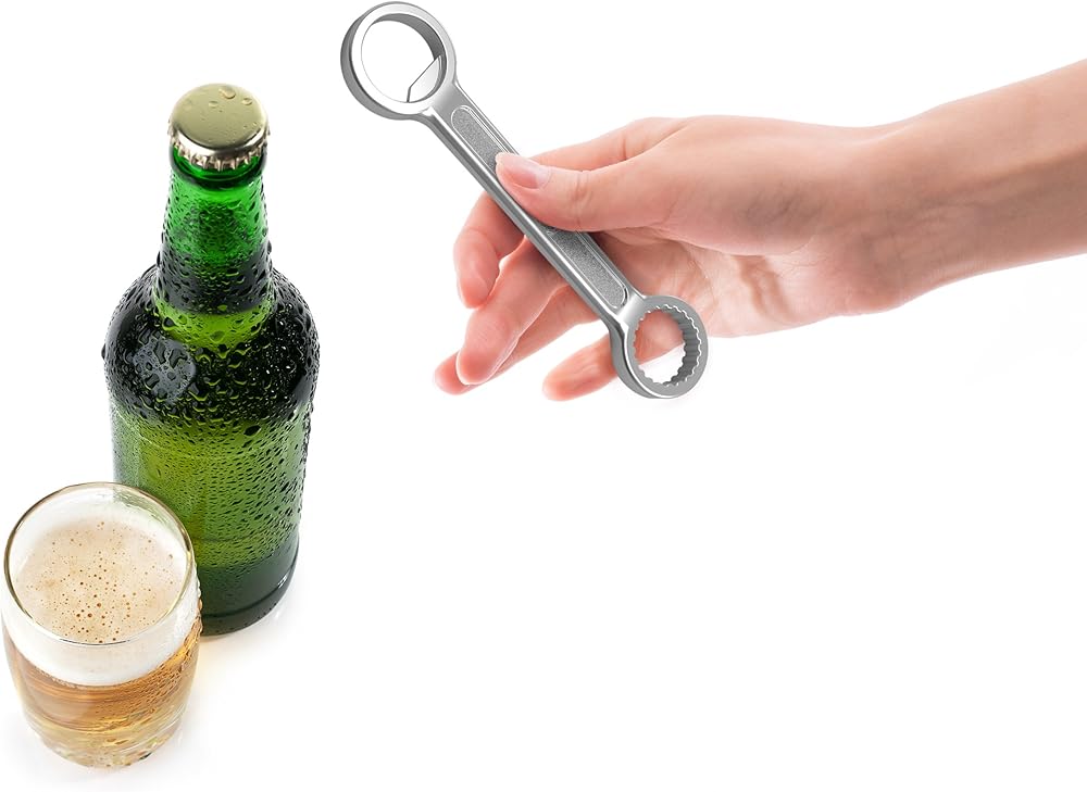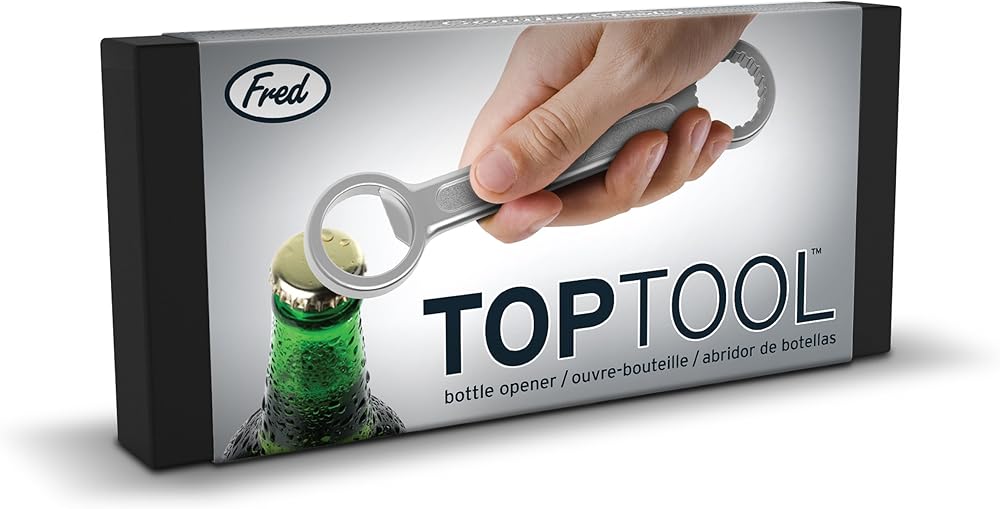 There's a perfect tool for every job and TOP TOOL is the ideal handy helper for the job of opening your bottles. The only tool you need for all your bottles. This heavyweight, well-constructed "bottle wrench" is built for a lifetime of flipping and turning caps. Chrome plating and zinc die casting in the shape of a standard wrench makes it look like a real handyman's tool. Heavy weight and expert construction allow for many years of use. It's the perfect tool for every opening job. Packaged in beautiful display box. Use it everyday or give as a gift to your favorite grease monkey.