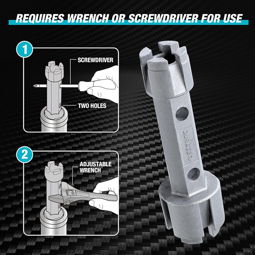 يُستخدم بمفرده أو مع مفتاح ربط قابل للتعديل أو يُستخدم مع مفكات براغي يتم إدخالها في فتحة واحدة من فتحتين للحصول على أفضل عزم دوران، ويتطلب المحور قوة أقل لاستخدامه في الدوران