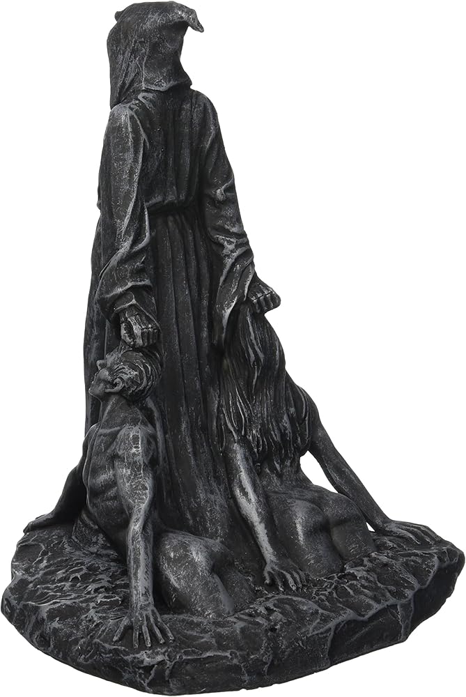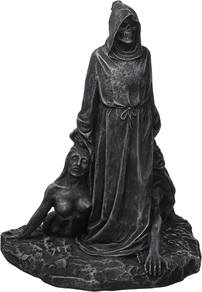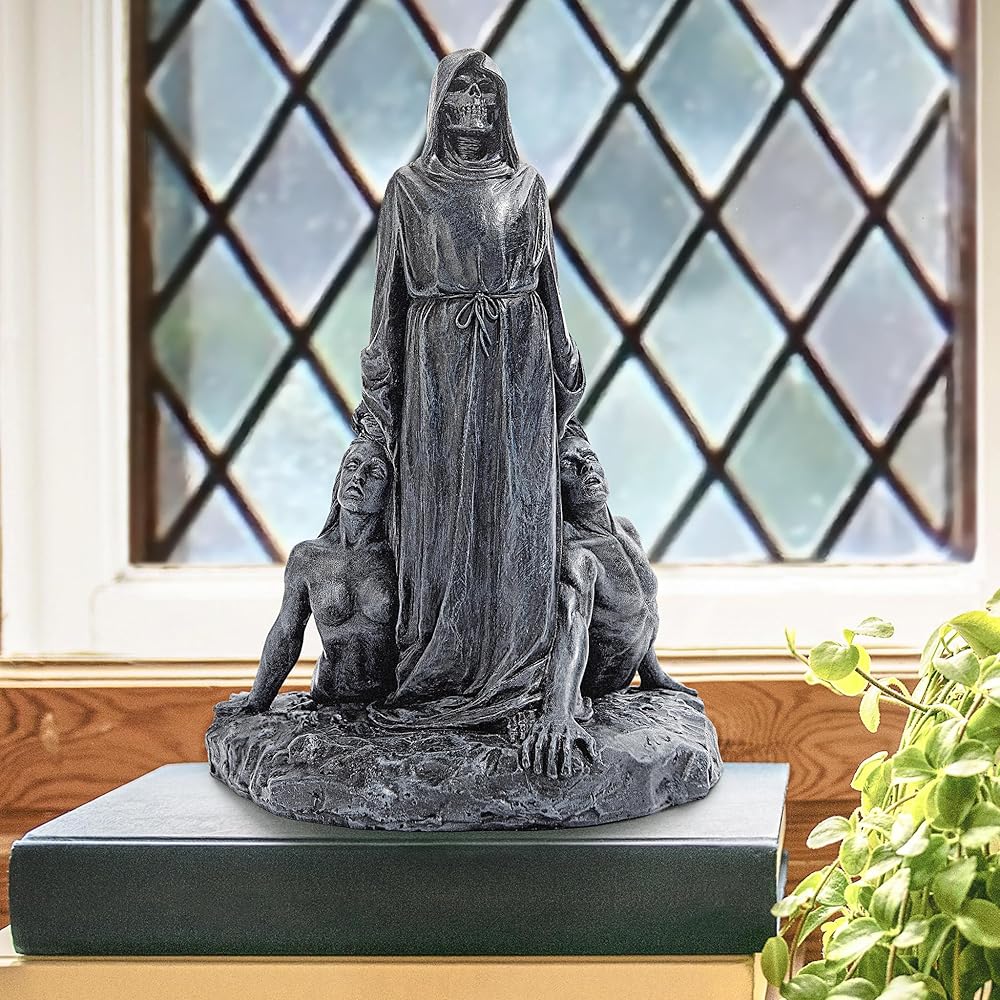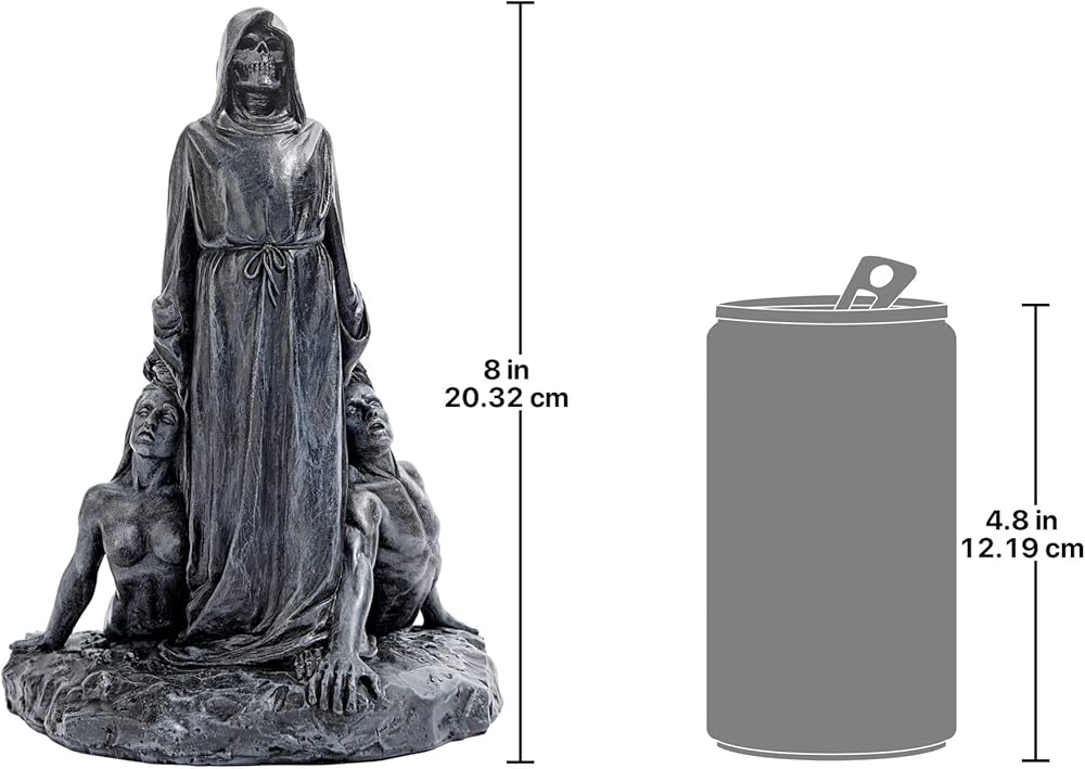 The Grim Reaper has a firm hold on destiny in this dramatic statue as he drags his victims to their final fate. Sculpted in amazing gothic detail exclusively for Design Toscano, everything from the tall shadowy presence to the resigned faces of his victims is cast in quality designer resin with a macabre greystone finish. 6"Wx5"Dx8"H. 2 lbs.