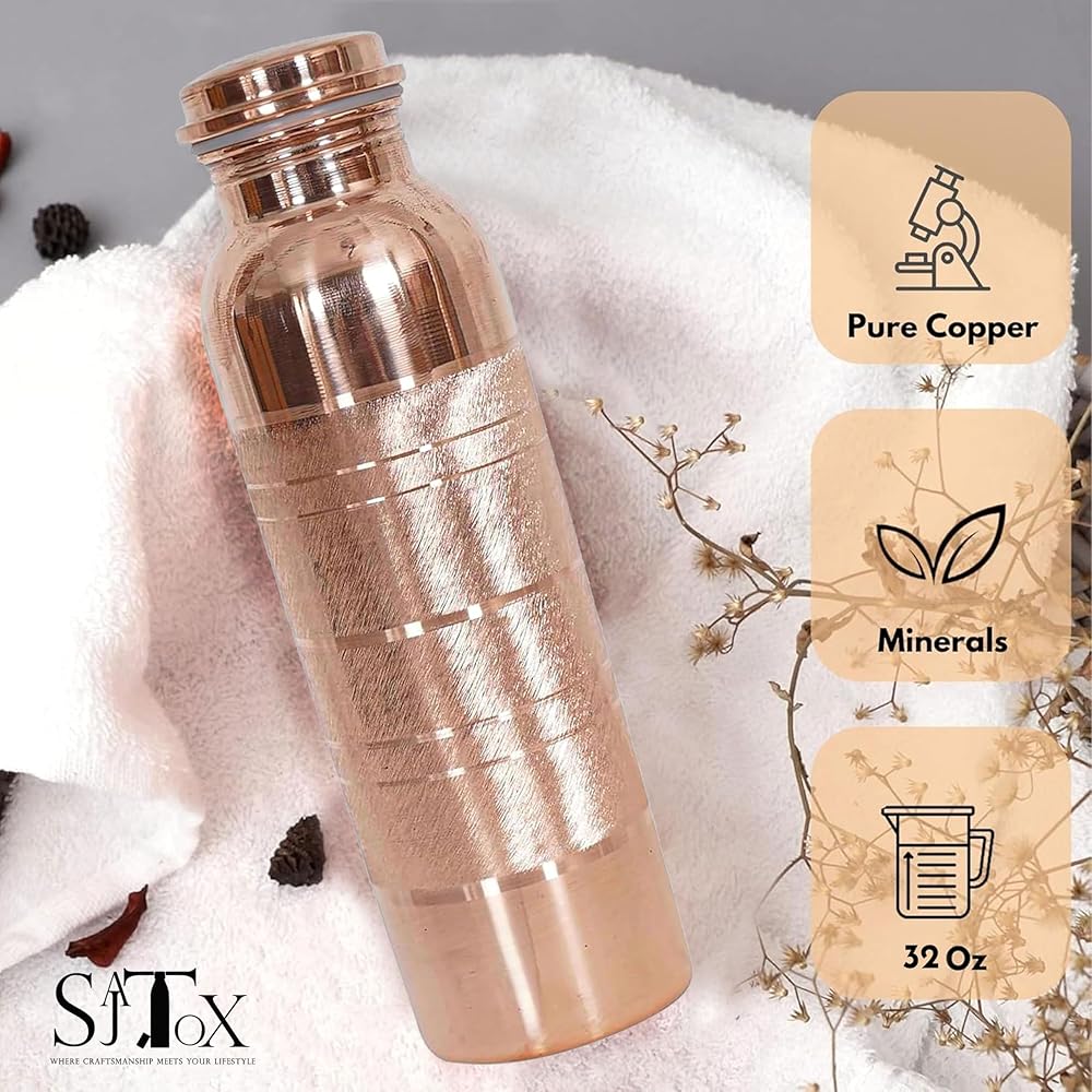 زجاجة مياه نحاسية نقية 32 أونصة زجاجة مياه نحاسية مع غطاء - زجاجة مياه نحاسية أيورفيدية - وعاء مياه نحاسي - اشرب المزيد من زجاجة ماء مضادة للتسرب