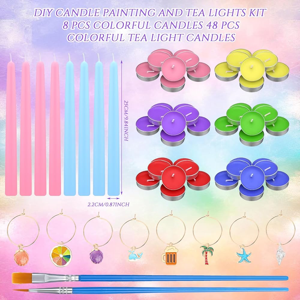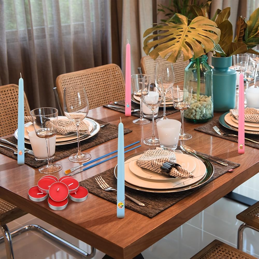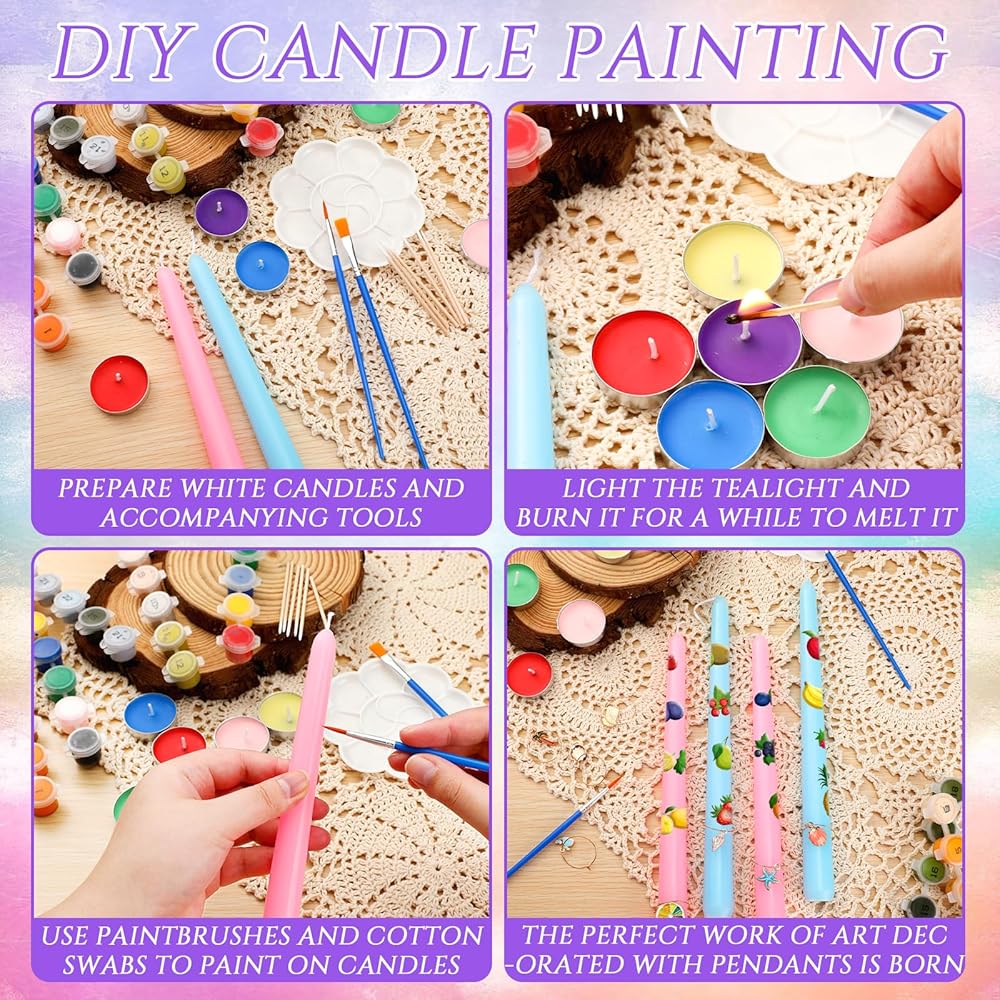 The set offers a selection of vibrant paint colors, making your DIY candle painting project an exciting one.