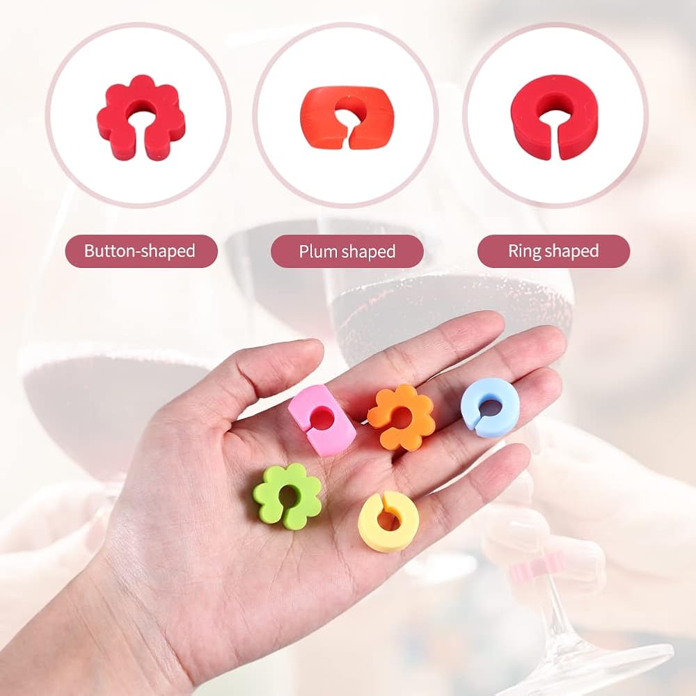 【MAIN FUNCTIONS】The colorful wine glass recognizer is easy to identify and track everyone's drinks, helps guests to identify the wine glass, don't worry about taking the wrong glass at the party. It is both decorative and practical.