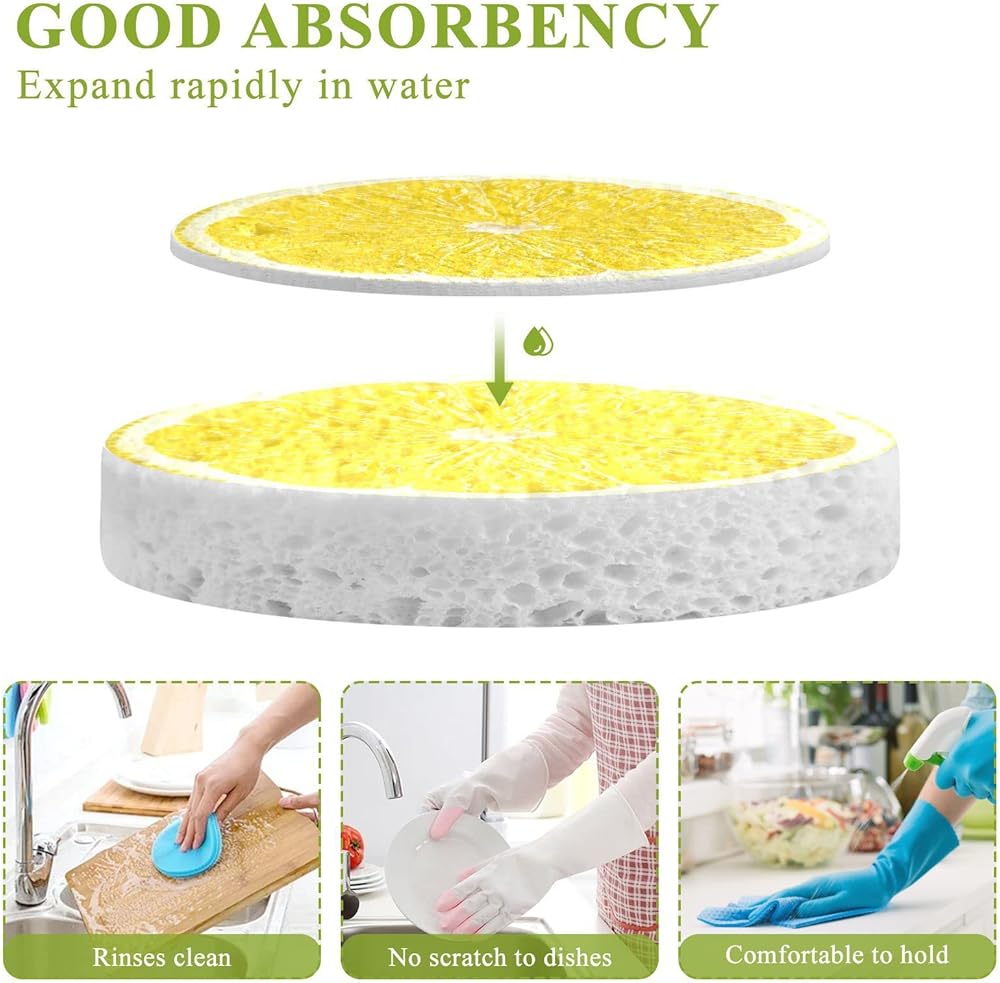 3 قطع من إسفنجات تنظيف المطبخ من كيجاي، خالية من الروائح، لغسل الأطباق، إسفنجة لب خشبية - ليمون أصفر مضحك