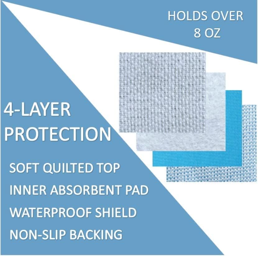 مريحة ومقاومة للانزلاق - تتميز وسادات التبول هذه بظهر من البولي فينيل كلوريد، مما يساعد على الحفاظ على واقيات البول هذه في مكانها. إن بقاء أغطية السرير هذه في مكانها يمنح المريض ومقدمي الرعاية راحة البال الإضافية مع العلم أنك وأثاثك محميان من التسربات.