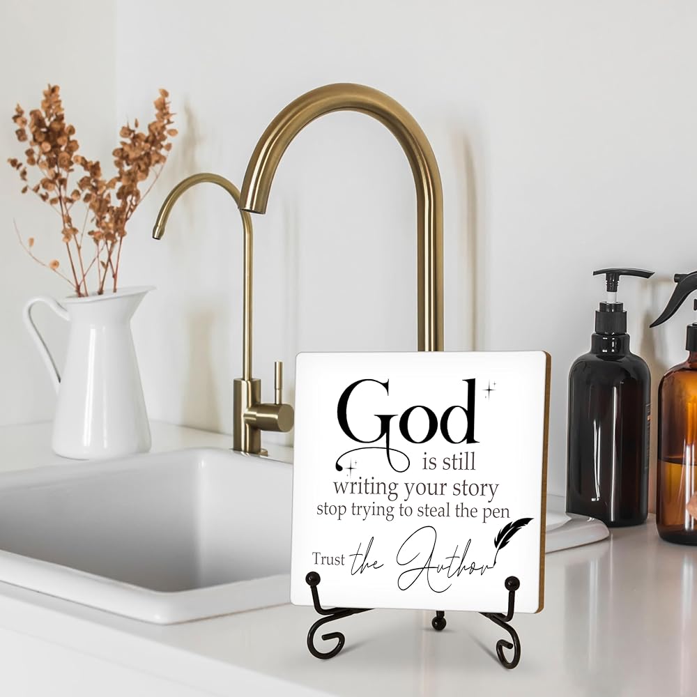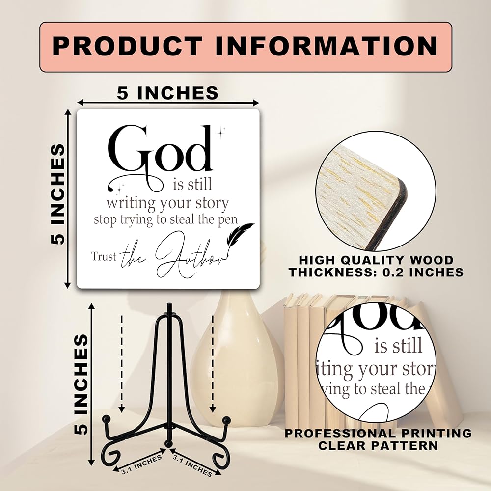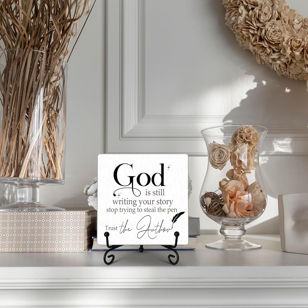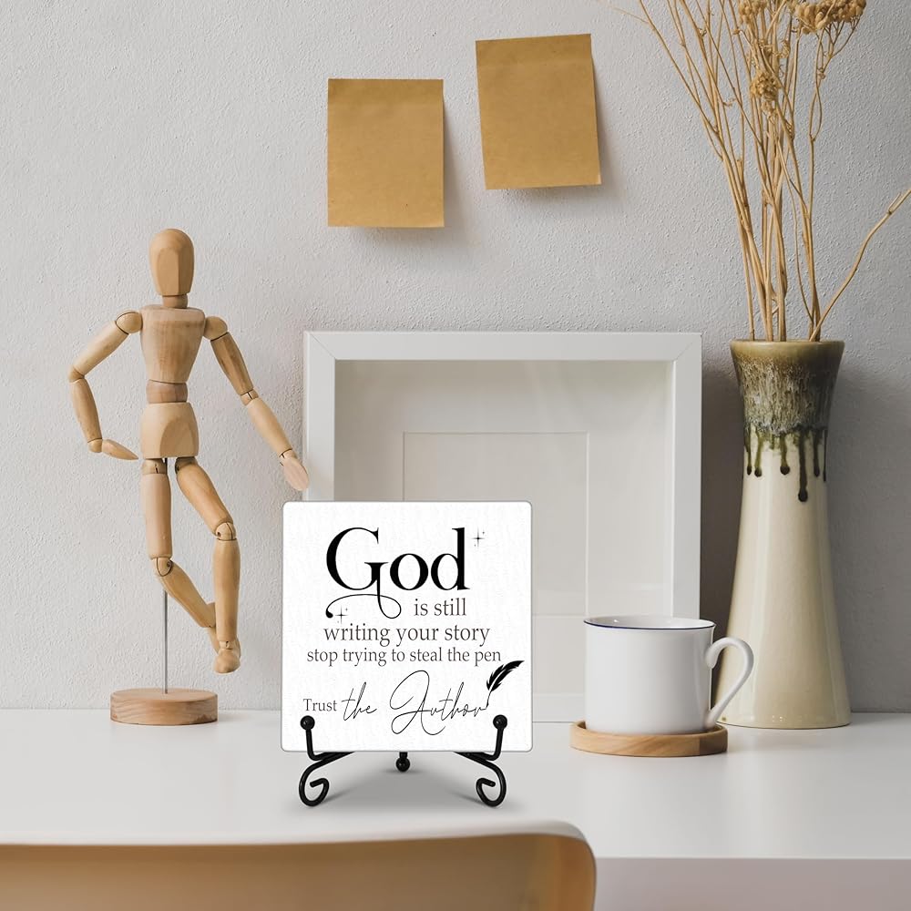 ديكور مكتب مسيحي، الله لا يزال يكتب علامة قصتك، ديكور غرفة مسيحية، هدايا مسيحية للنساء والرجال وأصدقاء الأسرة، علامة خشبية مضحكة لتزيين المكتب المنزلي الجرف-A13