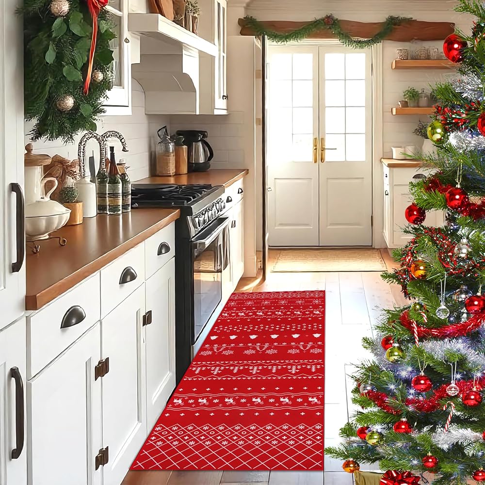 سجادة عداء عيد الميلاد مقاس 2 × 6 أقدام، سجاد مطبخ عيد الميلاد مع ندفة الثلج، ديكور عيد الميلاد غير قابل للانزلاق وقابل للغسل في منطقة السجاد لغرفة النوم، وغرفة المعيشة، والممر، والشرفة، والمطبخ