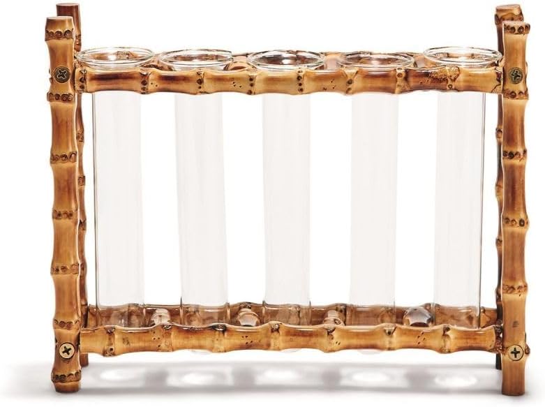 مزهرية من الخيزران الطبيعي من شركة تو مع 5 أنابيب زجاجية - عرض زهور على طراز آرت ديكو الحديث، زارع مستطيل لزينة ديكور المنزل، حامل تشكيلة زهور معاصرة فريدة من نوعها