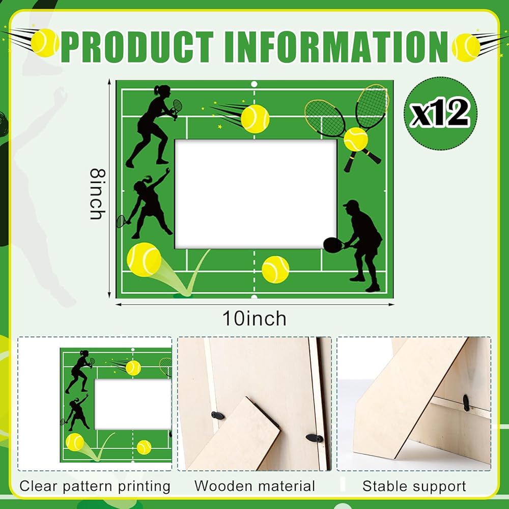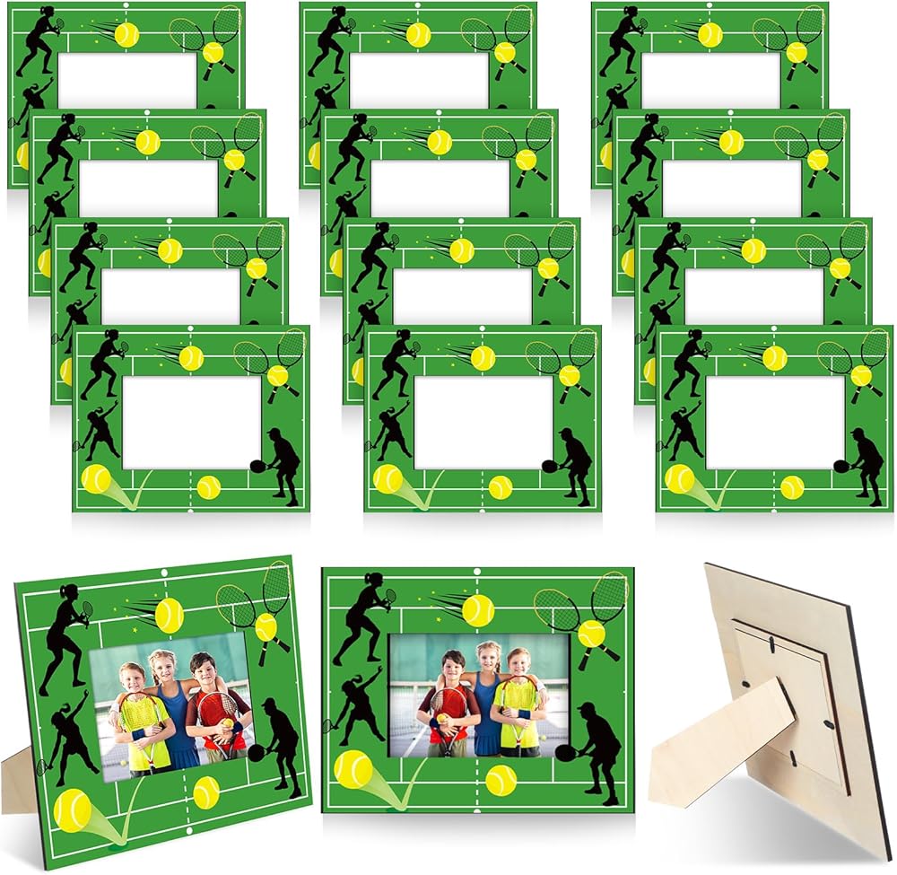 12 قطعة من إطار صورة التنس، هدية لفريق التنس الكرتوني، إطارات رياضية رياضية تناسب مقاس 4 × 6 بوصات، إطار صورة خشبي لديكور حفلات التنس، ومدرب رياضي، وفريق عيد الميلاد، وهدايا الحفلات