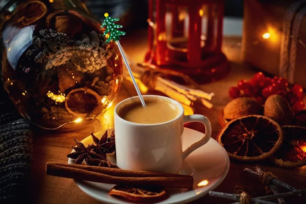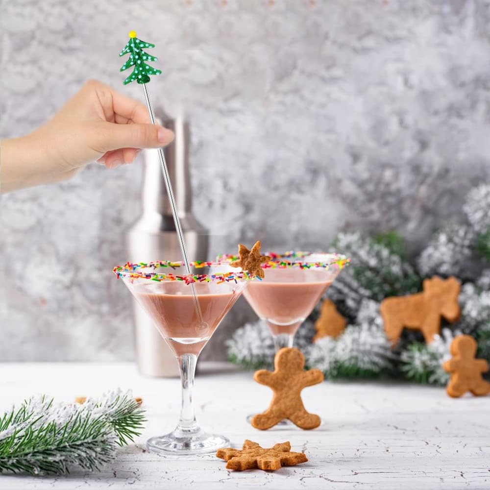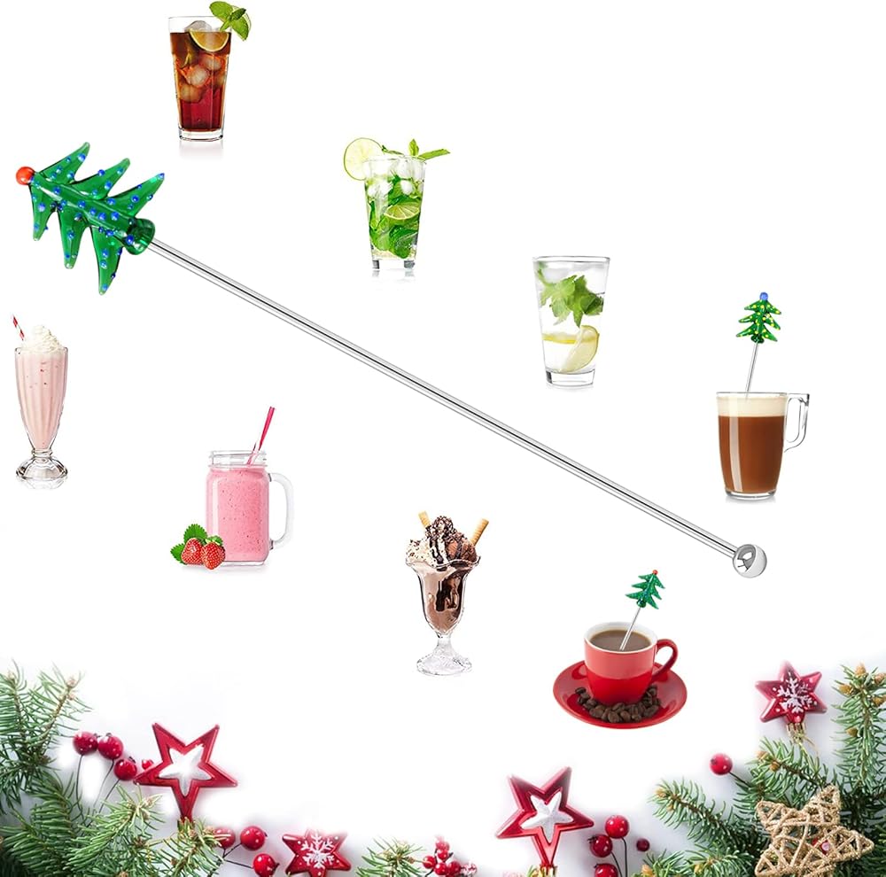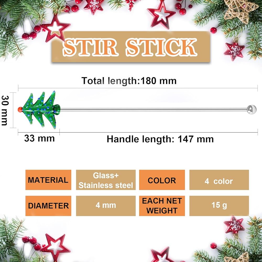 ★Material- The pine tree decoration is made of glass, exquisite and lovely. The stirring rod is made of stainless steel, which is safe and healthy, easy to clean and reusable.