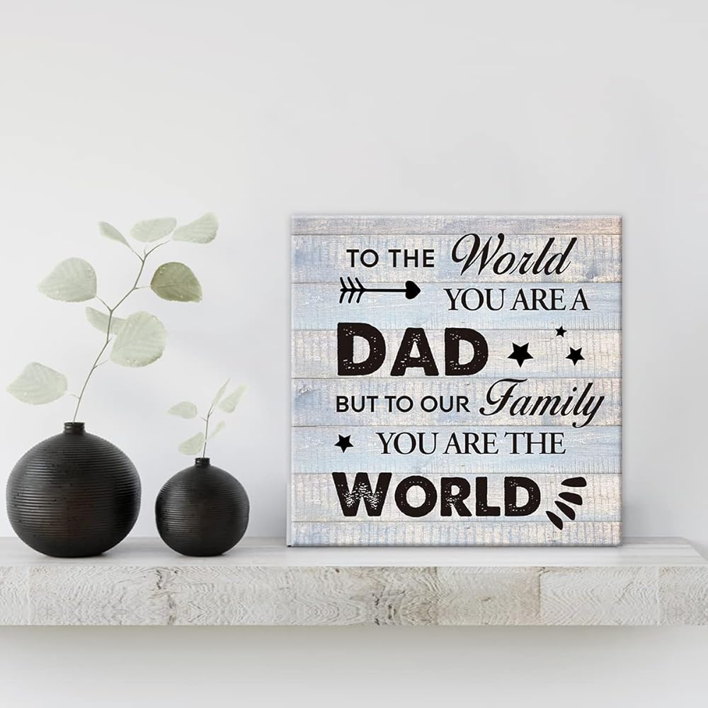 أفضل هدية للأب لبيت المزرعة لوحة فنية جدارية مطبوعة على القماش لديكور العالم أنت عبارة عن لوحة لافتة للأب لتزيين المنزل الريفي (8 × 8 بوصة، مؤطرة)
