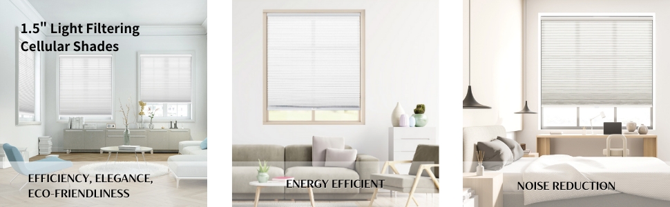 Ideal Lighting and Privacy: Achieve perfect lighting and privacy with Light Filtering Cellular Shades. Ideal for living rooms, dining rooms, and bathrooms, the cordless operation customizes light filtering for balanced illumination.