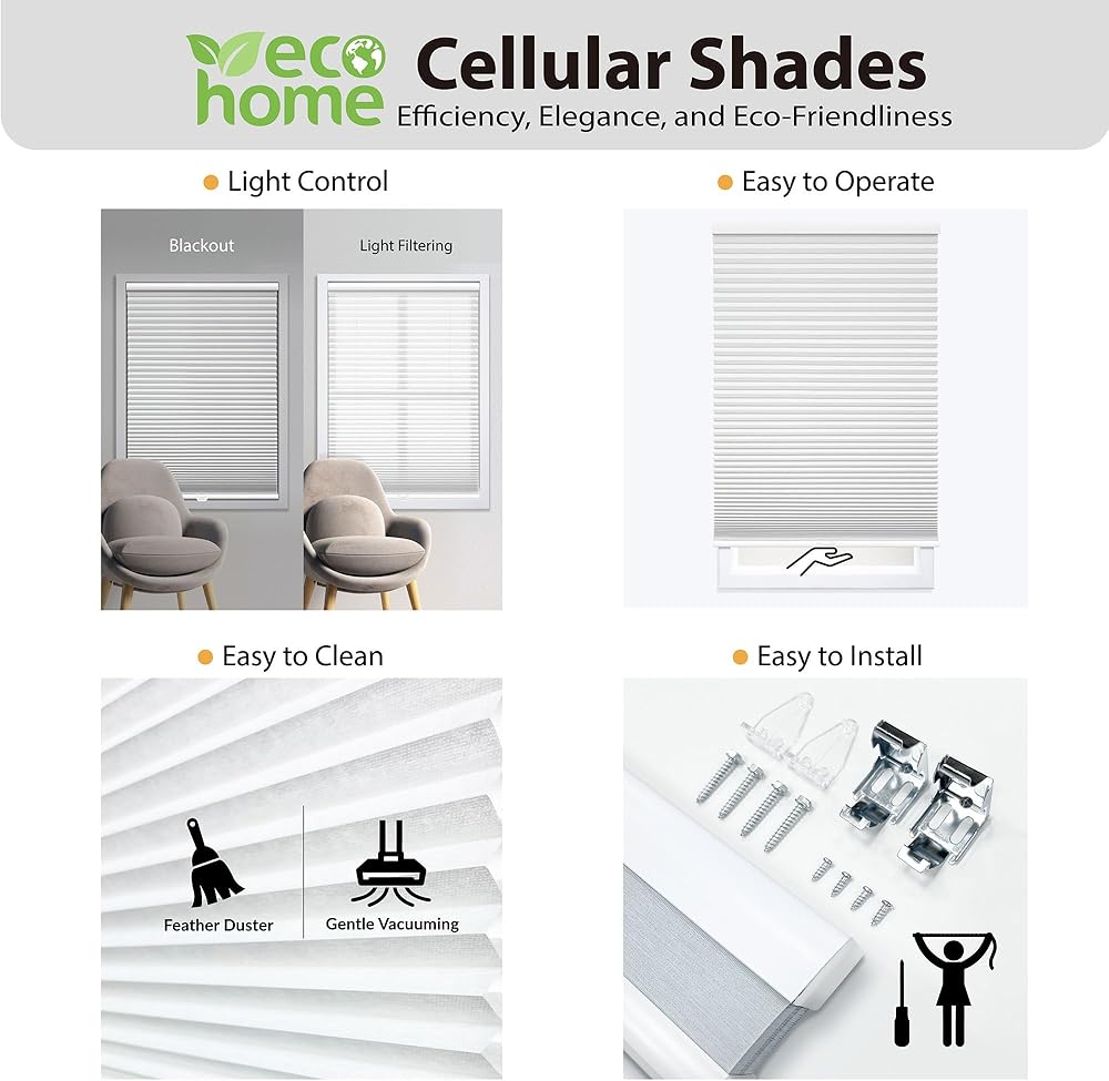 Sleek Cordless Easy Operation: Enjoy a modern and clutter-free experience with cordless mechanisms, offering easy operation and a sleek look. Mount the cellular shade inside or outside the window frame for a contemporary aesthetic.