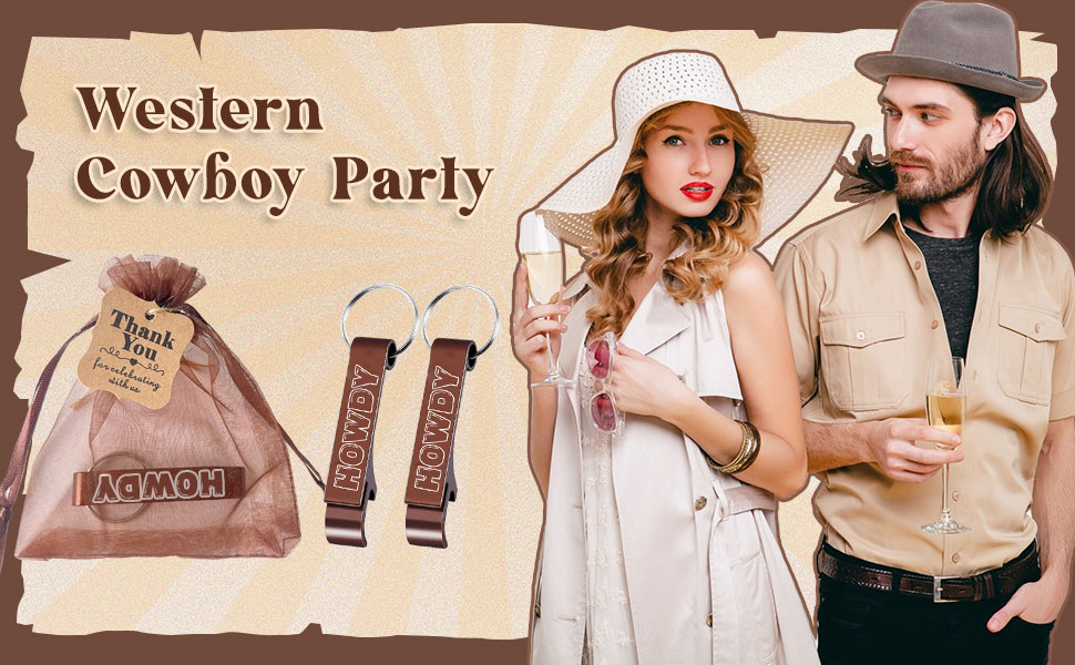• هدايا الحفلات الغربية: تتضمن العبوة 30 قطعة من فتَّاحات الزجاجات الغربية المعدنية، و30 قطعة من أكياس الأورجانزا، و30 قطعة من بطاقات الشكر وحبل ملفوف واحد، والخيارات المتنوعة والكمية الكافية سوف تلبي احتياجات حفلات رعاة البقر الغربية أو هدايا الزفاف الخاصة بك بسهولة.