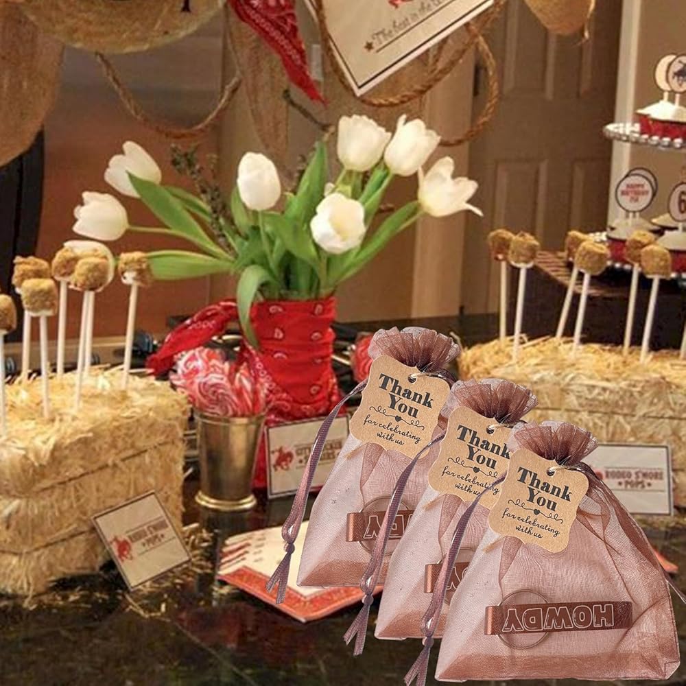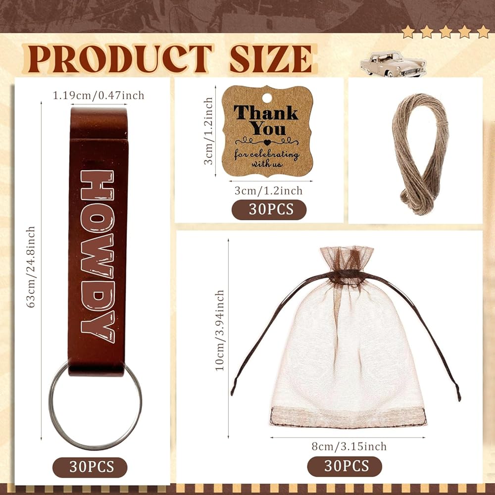 30 مجموعة من سلسلة مفاتيح فتاحة الزجاجات لحفلات رعاة البقر الغربية مع أكياس الأورجانزا وبطاقات الشكر وسلسلة مفاتيح فتاحة البيرة لحفلات استقبال المولود الجديد وحفلات الزفاف بطابع الغرب المتوحش