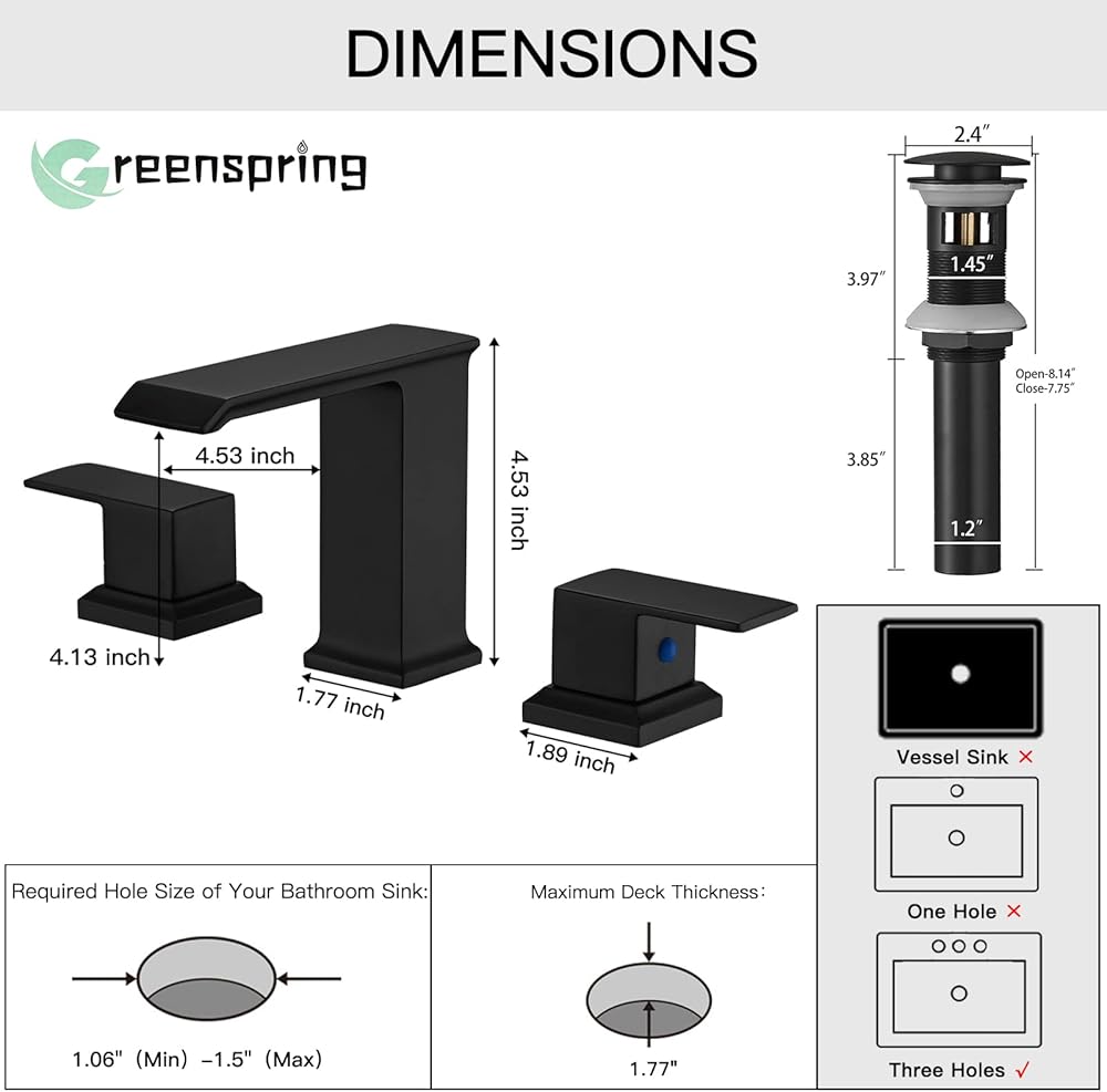 تركيب بفتحة واحدة أو 3 فتحات - متوافق مع شعار التثبيت بفتحة واحدة أو ثلاث فتحات، يغطي فتحتين جانبيتين لجعل الصنبور جميلاً