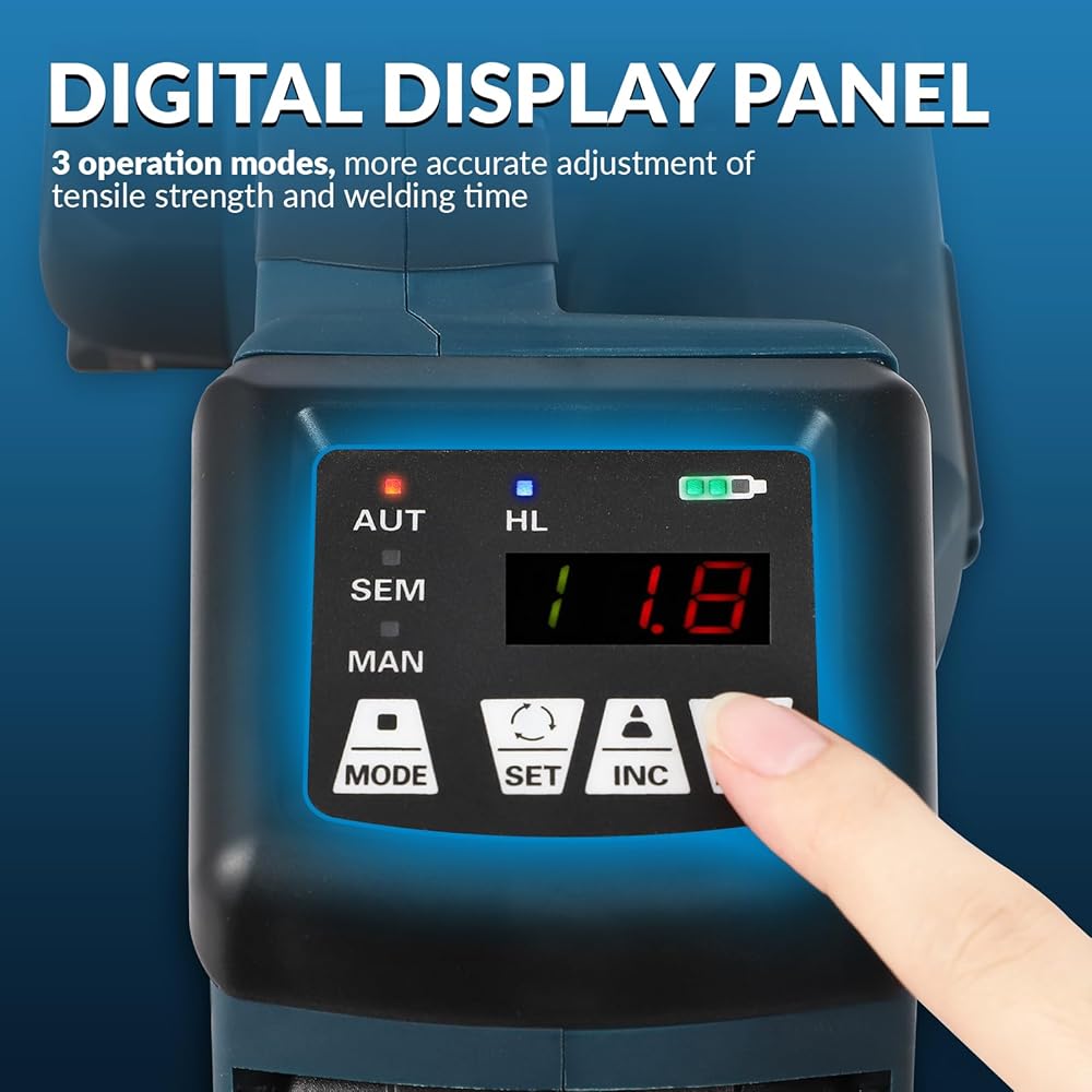 • ماكينة ربط أوتوماتيكية بالكامل - هناك 3 أوضاع تشغيل، يمكنك اختيار أوتوماتيكي بالكامل/شبه أوتوماتيكي/يدويًا، ويمكن تعديل جميع الإعدادات على الشاشة الرقمية. في الوضع التلقائي الكامل، ما عليك سوى الضغط على زر واحد وبعد ذلك ستصبح الماكينة أوتوماتيكية بالكامل لإنهاء الشد واللحام والقطع في ثوانٍ معدودة.