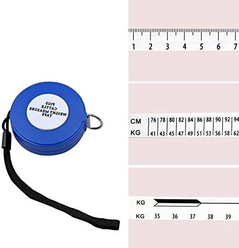 • The total length of the weight measuting tape is 2.5 meters. And the weight range for pigs is 41kg to 201kg. The weight range for beef cattle is 268kg to 1080kg which for dairy cattle is 35kg to 1000kg.