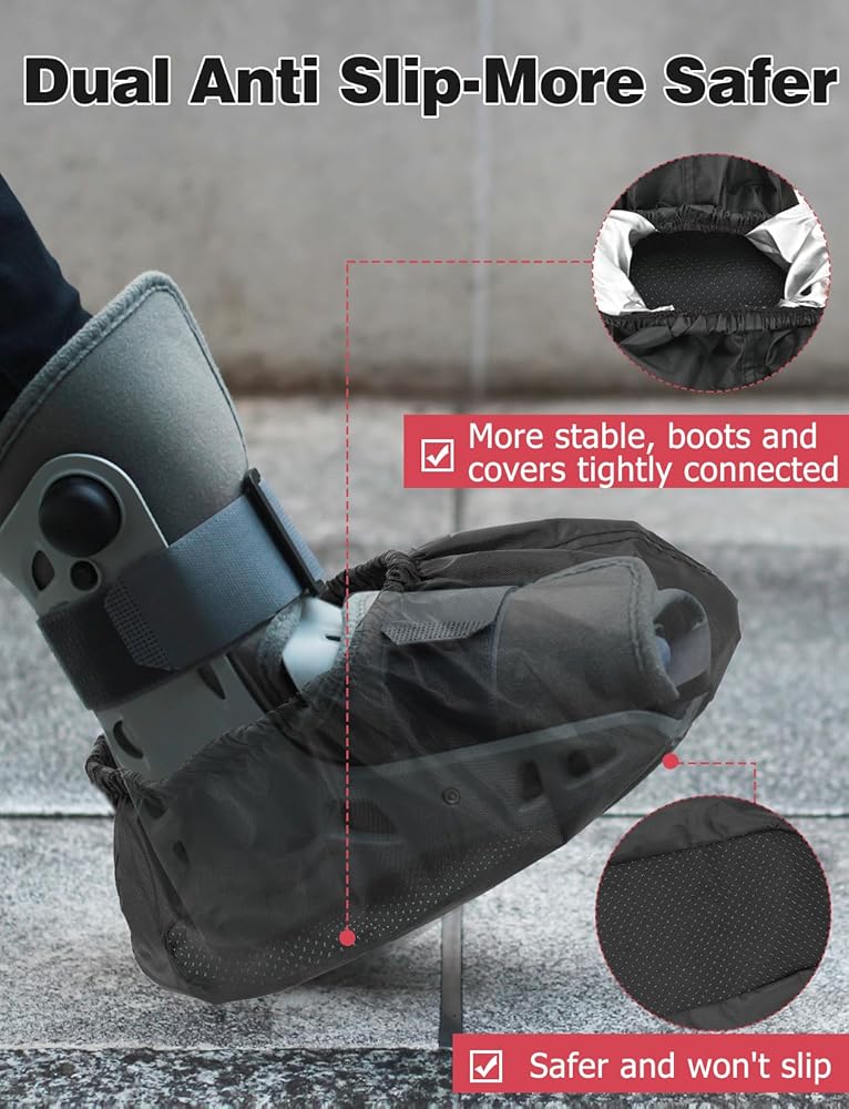 Advanced Dual Anti Slip Solution: Our medical boot covers soles are densely covered with anti slip contacts on both sides, ensuring a solid grounding whether you walk on smooth sidewalks or rough paths. At the same time, the anti slip contacts inside the shoes ensure a stable connection between the boots and the shoe cover, providing you with dual anti slip protection.
