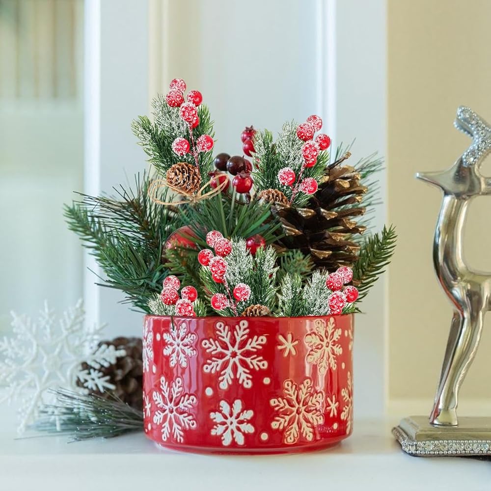 Package includes: You will get 12 pcs Christmas picks, realistic appearance to decorate Christmas tree or garlands, satisfy most of your crafting needs. Use our red berry pine branches flower pick to decorate your home or presents to increase the festive atmosphere of Christmas