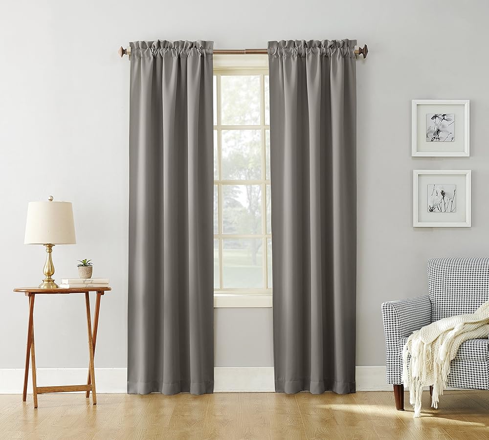 Sun Zero Easton Rod Pocket Blackout Curtain is perfect for any room in your home. The woven solid design with an easy to hang rod pocket-top offers a classic style that fits in with any room decor while blocking light and noise for better sleep; help keep your home cooler in the summer and warmer in the winter. Blackout or opaque panels virtually block all light. This panel gives complete privacy. Sold individually. Hang on a rod up to 1.5 inch in diameter. Polyester. Washable. Imported.