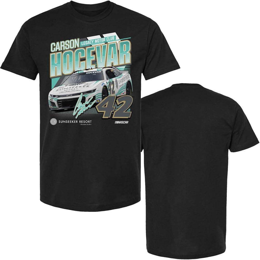 Carson Hocevar will pilot the #42 Sunseeker for the reminder of the 2023 Nascar season. Celebrate his ride with the attached front print tee.