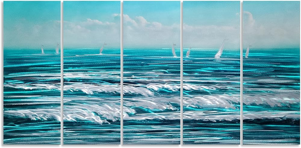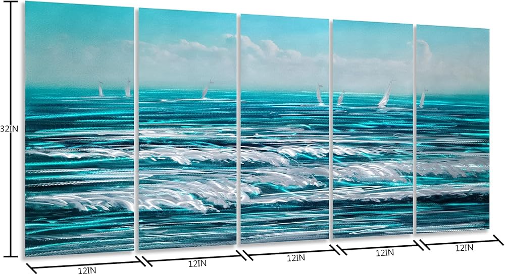1.LARGE SIZE Coastal Metal Wall Art Size 24x64IN. The dimensions include 1IN of spacing between the panels. Features pre-installed brackets “float” the artwork 1.2-inches off the wall. 2.INDOOR OR OUTDOOR DECOR: This Coastal Metal Wall Art can be displayed in your living room, veranda, bedroom, kitchen, bathroom, guest room, patio, office, dinning room, meeting room, hallway, lodging, coffee shop, condo, apartment, hotels, inn, Spa, Lounge, Sauna, bar, kids room and so on. It looks amazing under track lighting and brilliant under natural light. 3.EASY TO HANG: This Coastal Metal Wall Art arrives ready to hang with bendable hangers. There is a handy measuring tool for simple installation. Aluminum is lighter than other metal so it is easy to hang it on the wall. 4.Unique Metal Wall Art, Such Coastal Metal Wall Art is hand grind on Aluminum, which is special workmanship. Each wall art need more than 72 procress hand crafted work. So every arts is unique and valuable. 5.Buy with Confidence: If you are unhappy with your purchase for any reason, we want to make it right. FULL REFUND or new REPLACEMENT! All questions will reply in 4 hours.