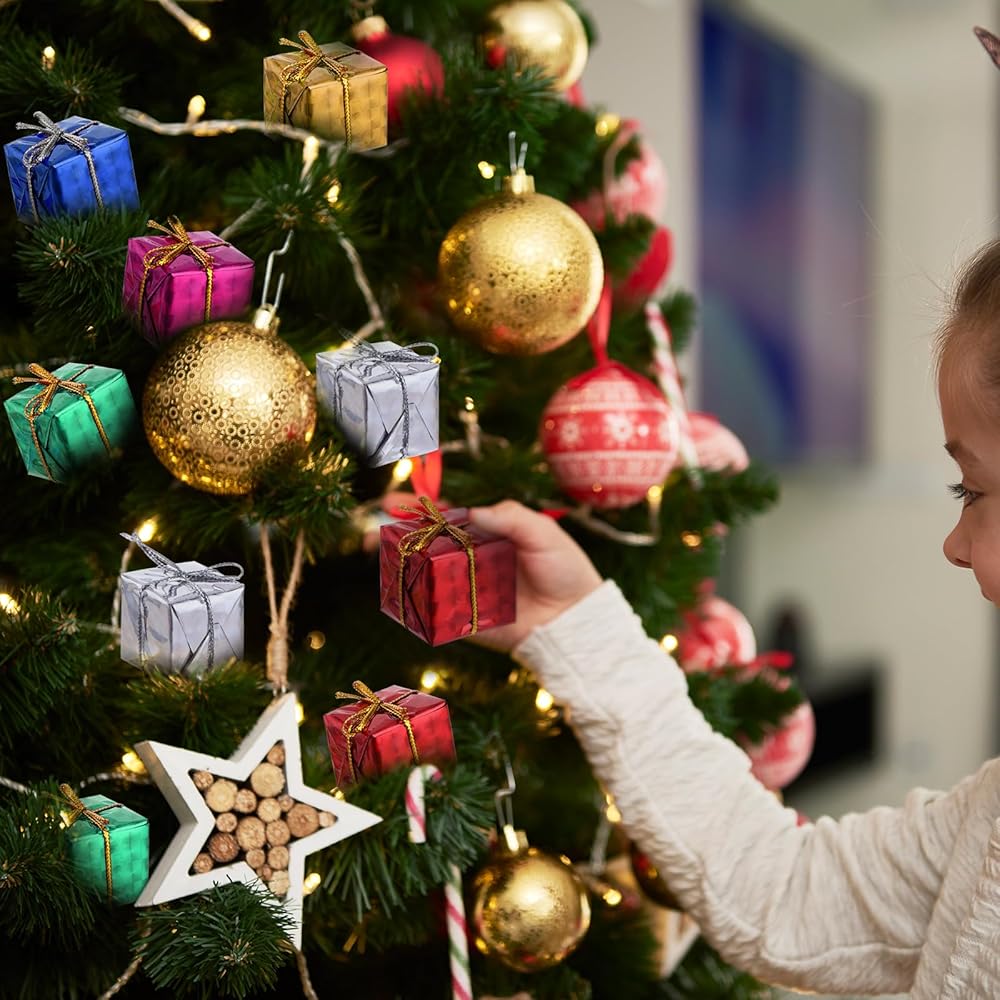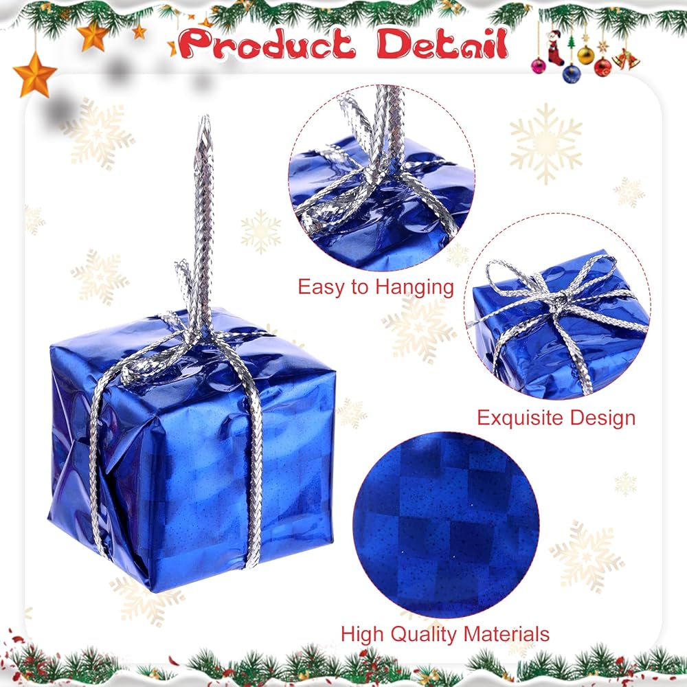 Easy to Use: Each Christmas gift box ornament comes with a sturdy hanging rope, convenient for on the Christmas tree, window, ceiling, door, or other places. Rope for easy hanging, allowing you to effortlessly decorate your home or gifts.